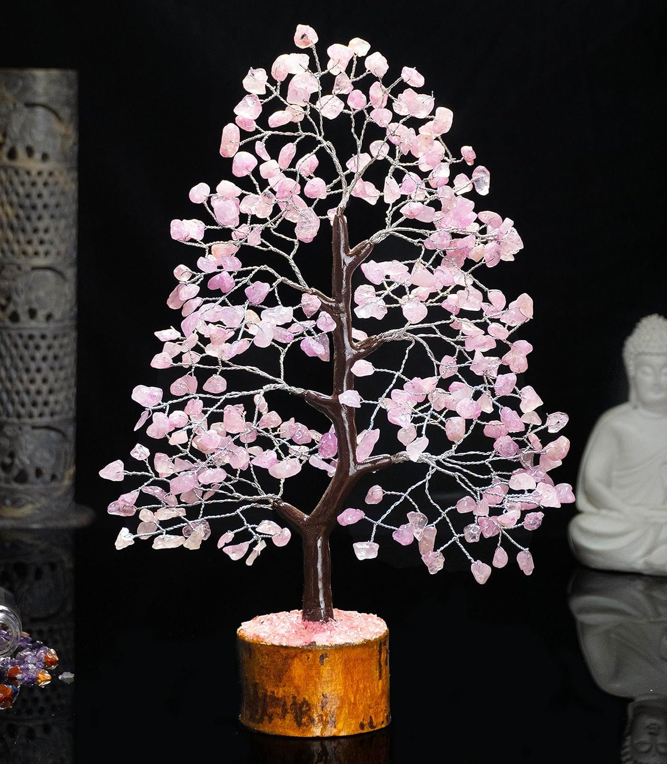 🌿Rose Quartz Tree :- Rose quartz is known for its heart healing properties. The love and healing vibrations help replace toxic emotions and blockages that clogs the heart chakra and replaces it with the energy of love. Rose quartz healing properties can help you understand and accept past situations, which will allow your heart to heal from emotional wounds and transform into a renewed state of trust.