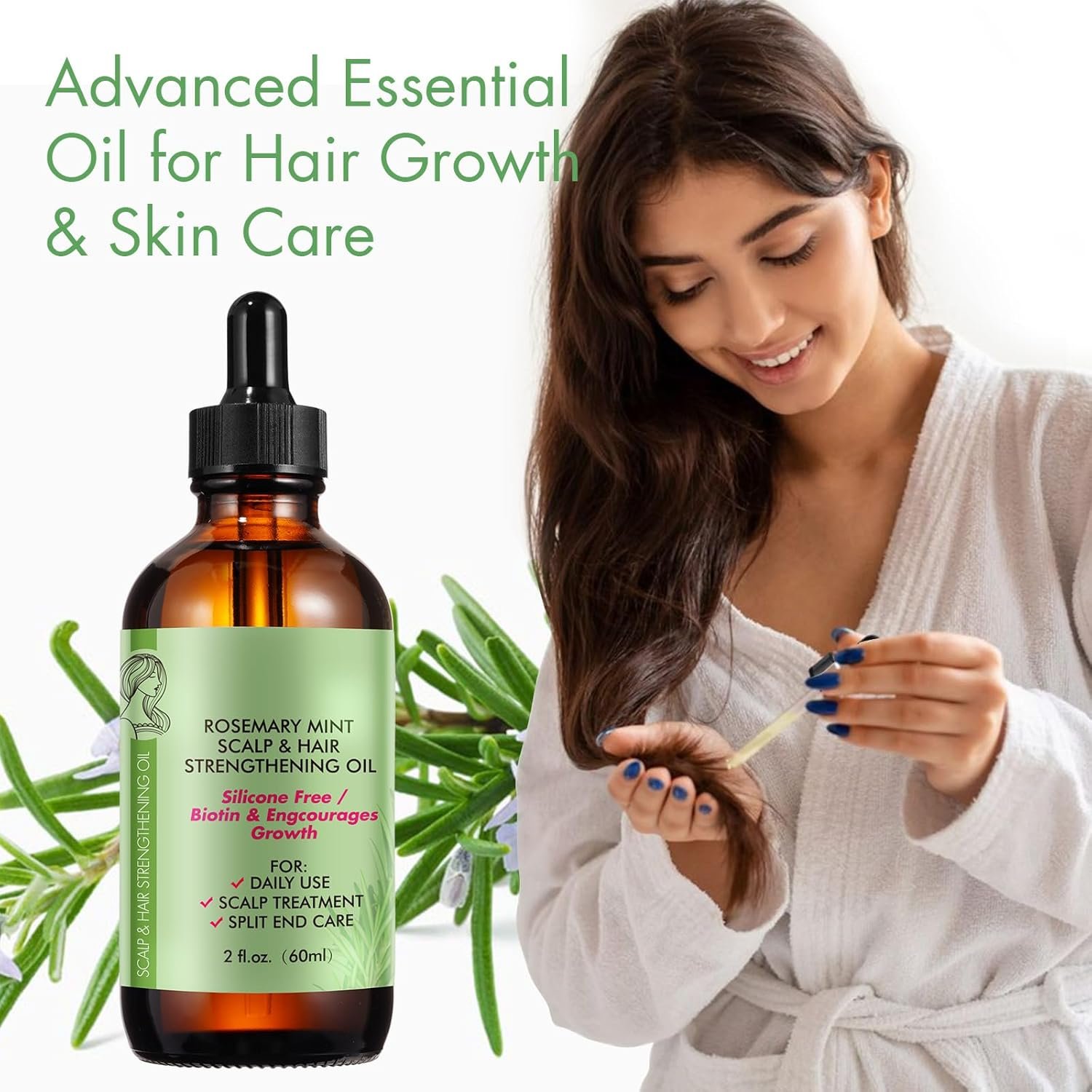 Hair Oil: Rosemary oil provides deep nourishment to hair, control sebum, nourishment of them due to its unique organic ingredients. Rosemary oil also can used as eyebrows and eyelash serum.