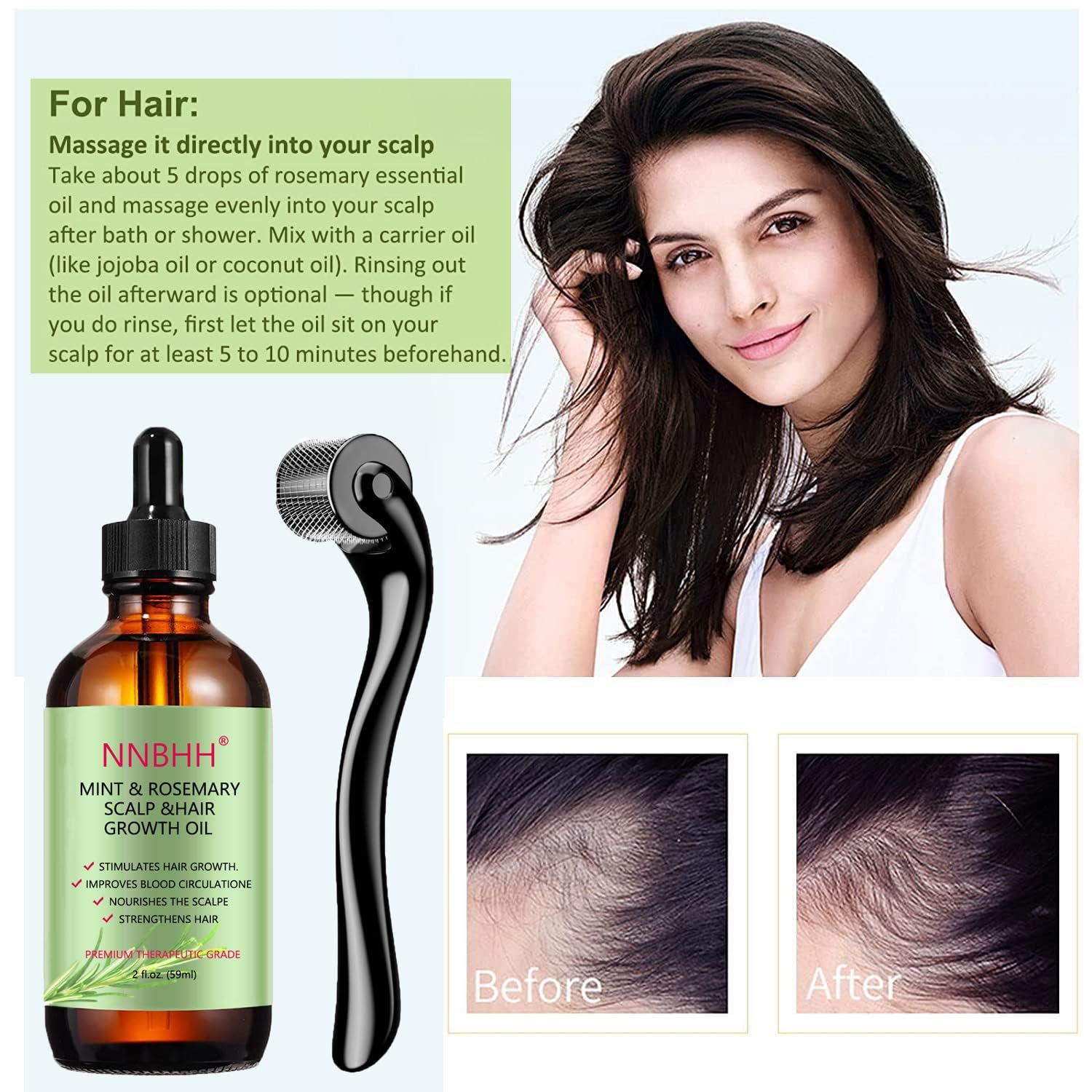 ENHANCES HAIR: Mint-flavored Rosemary Hair Growth Essential Oil has a nourishing effect on the scalp and hair, which helps to strengthen hair and reduce hair breakage and shedding.