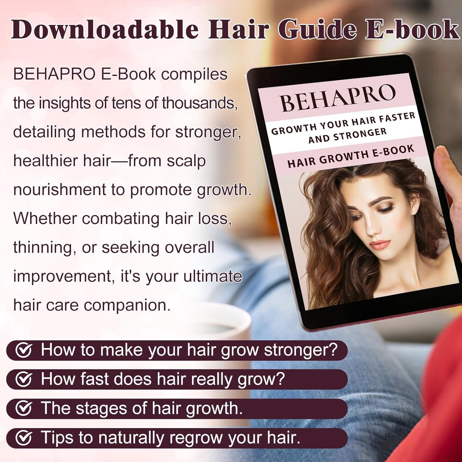 【All Natural Hair Growth Products】We care about your health, which is why our hair thickening products for women and men that contain no sulfate,paraben,cruelty, gluten,Ideal for all hair types; What’s more, all BEHAPRO’s hair growth products are totally free from cruelty and never tested on animals.Please buy with confidence.