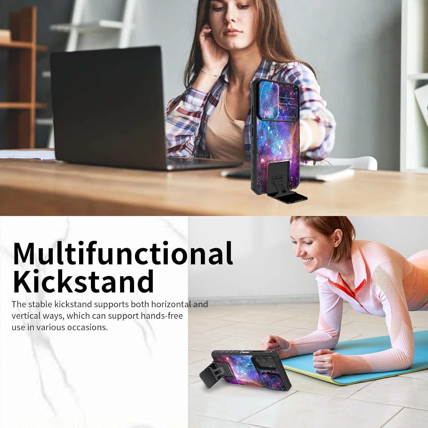 🍀【Kickstand Function 】- Foldable kickstand design on the back of the Galaxy A14 5G case,be placed horizontally and vertically, freeing your hands, and can be used for work, study, travel and movies