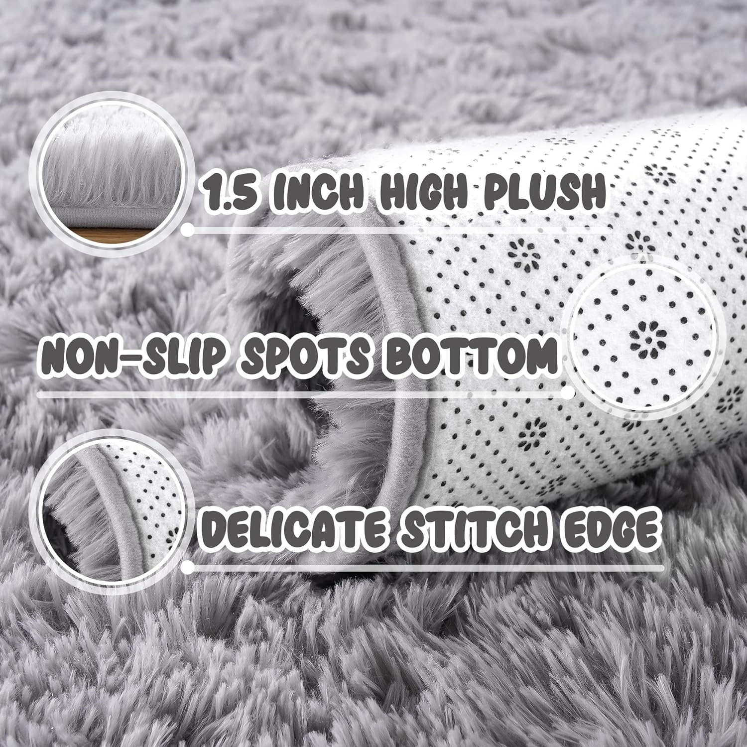 Super Soft & Fluffy Rug : Our plush area rug is made of three layers of material: a super soft 1.5 foot high pile on top, a high density sponge sandwich in the middle, and a non-slip design on the back.When you step on the shaggy rug with bare feet, it will give you a surprisingly soft touch.Keep your feet off the cold floor.