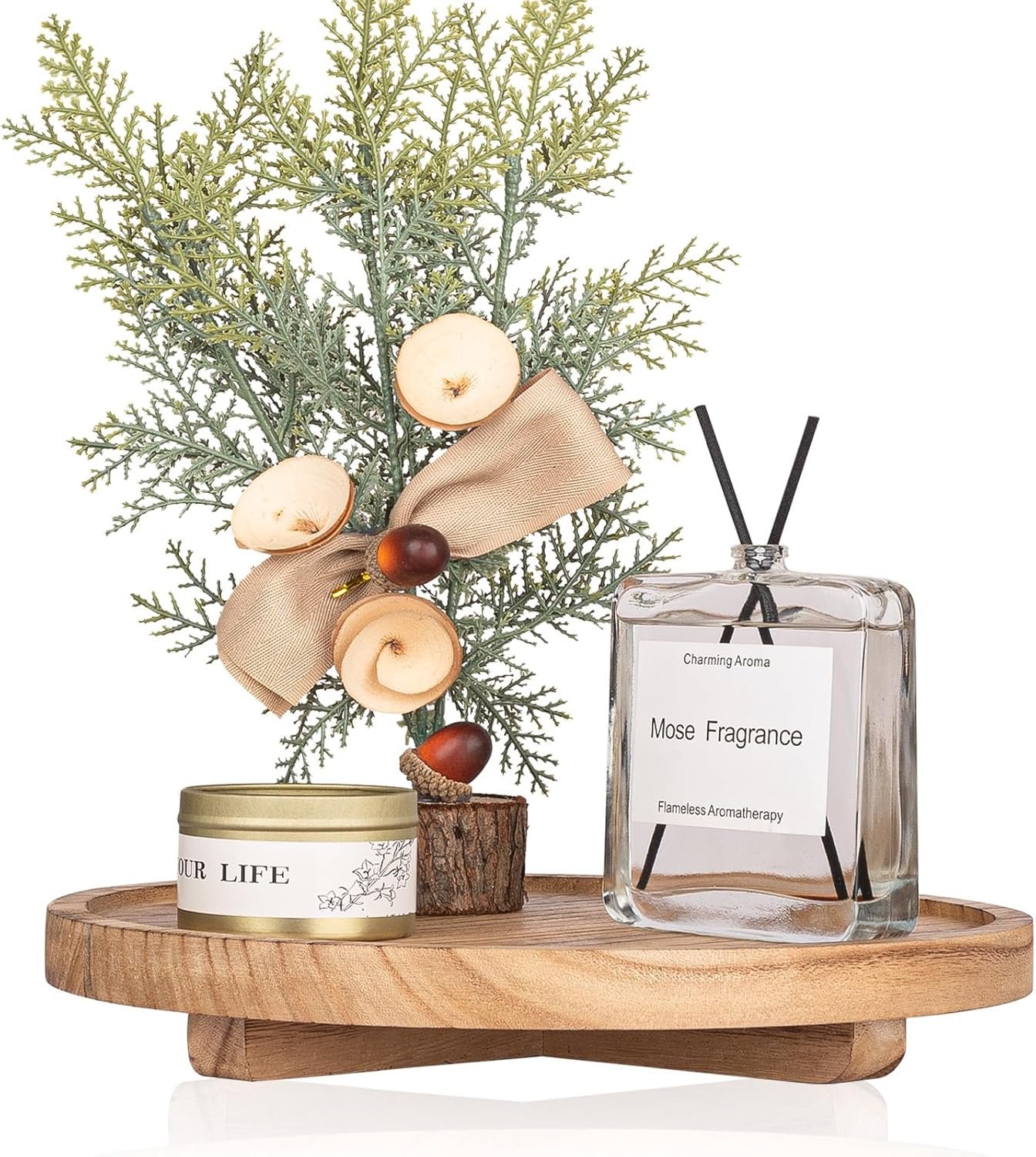 Be the first to review “Round Decorative Tray Wood Bathroom Counter Organizer Farmhouse Kitchen Decor Wooden Riser for Soap Dish, Perfume, Candle, Sponge, 10″ – Brown”