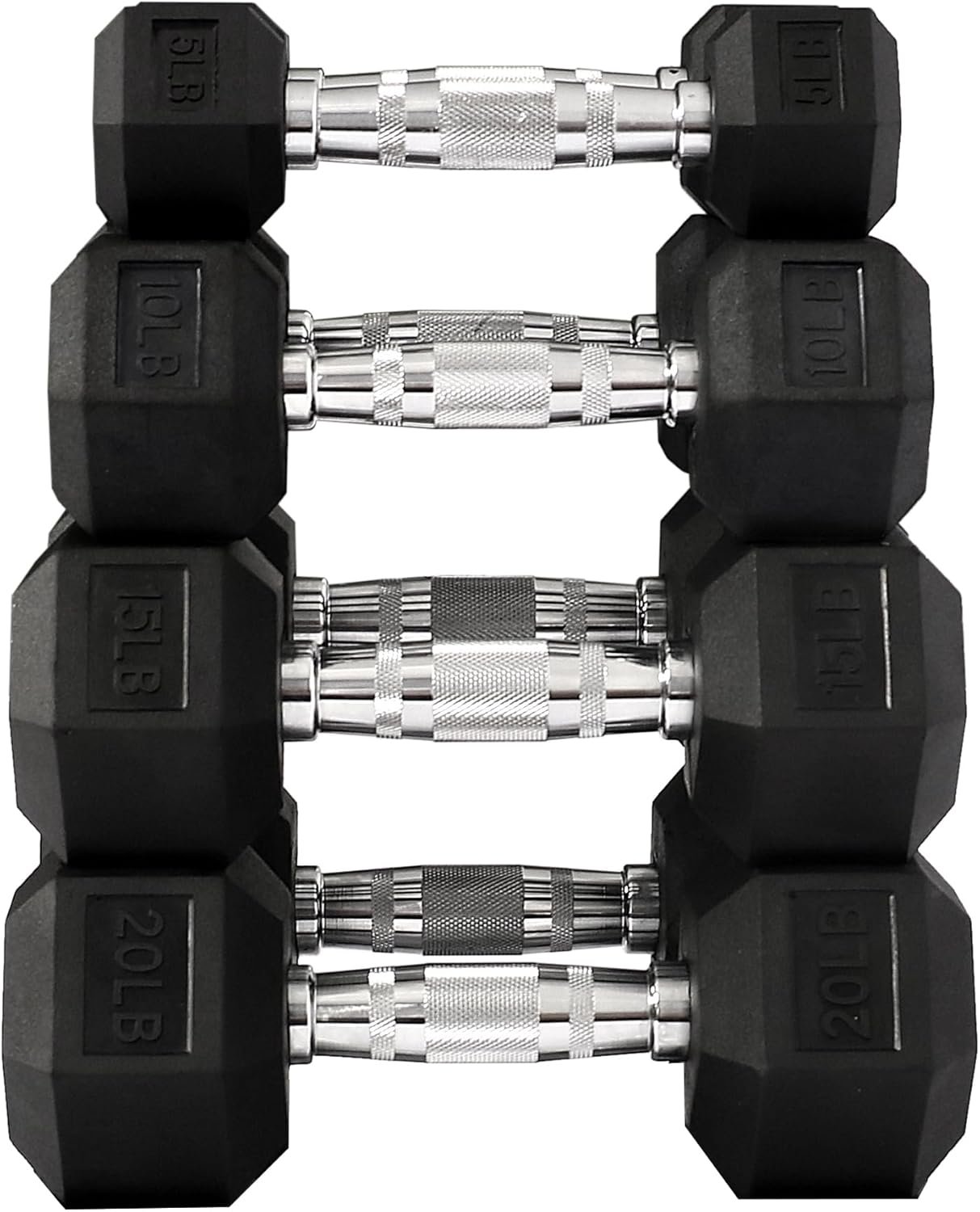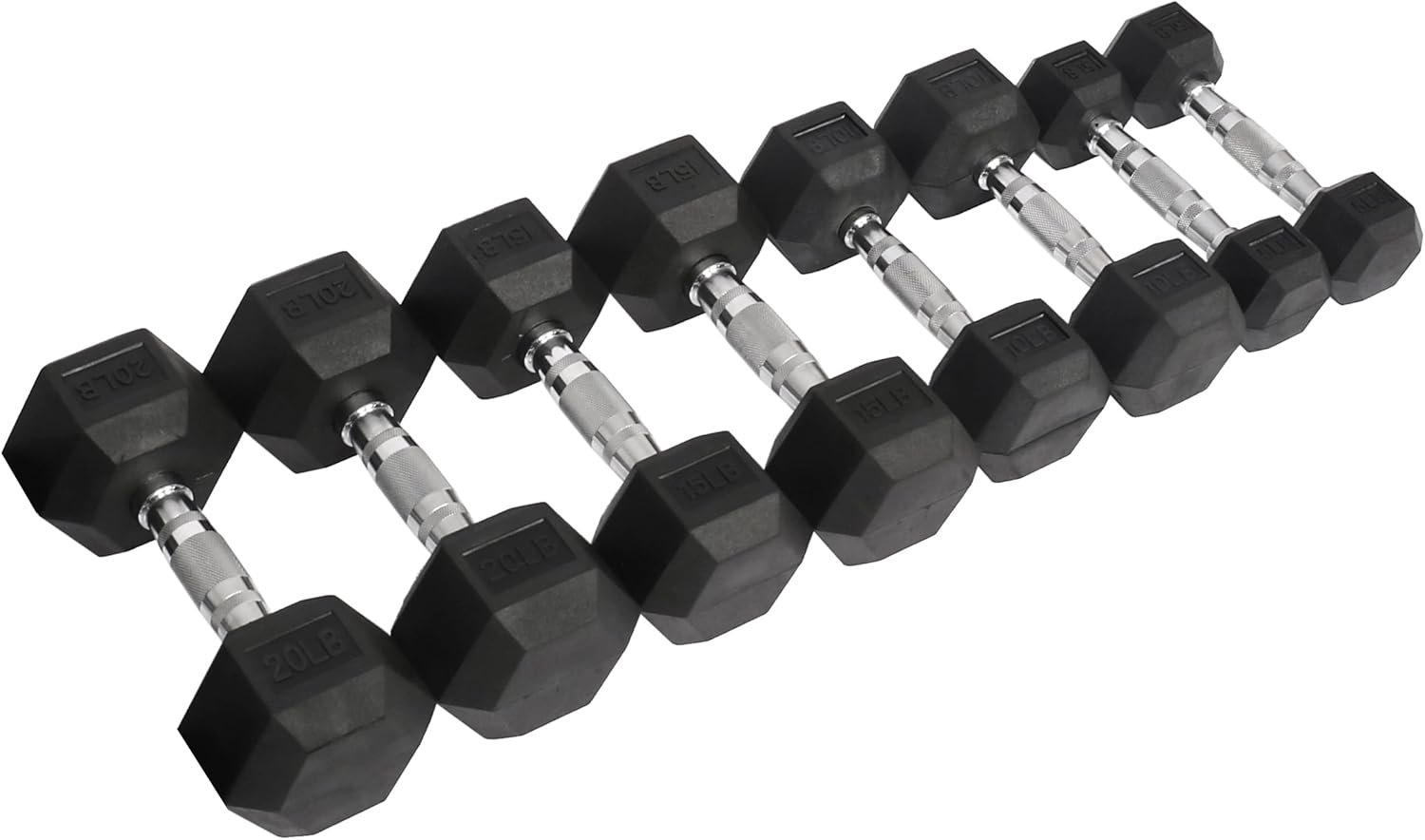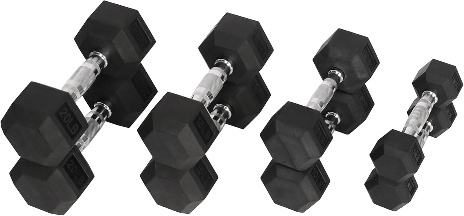 Signature Fitness Rubber Encased Hex Dumbbell, 100-Pound Set: A pair of 5LB, 10LB, 15LB and 20LB