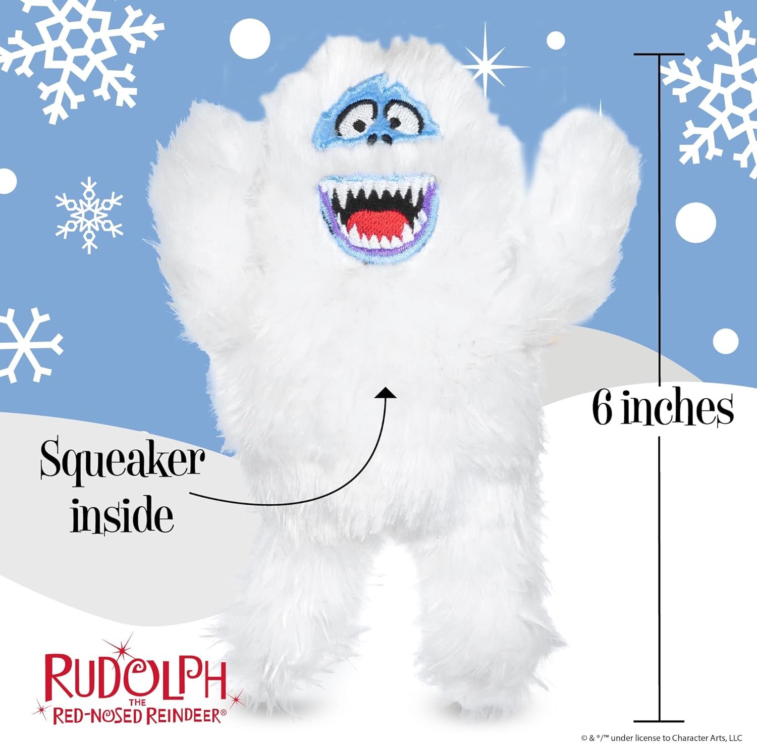 Give your pet a playtime they’ll never forget with their very own plush dog toy set inspired by the “Rudolph the Red-Nosed Reindeer” TV special! This cute dog toy set includes both a Rudolph and Bumble plush for dogs. Each is a plush dog toy with an internal squeaker. Great as a stocking stuffer or an everyday gift, this Rudolph toy for all dogs is fun for everyone. This plush Rudolph the Red-Nosed Reindeer dog toy measures 6 inches tall and is best for light to medium chewers. Made from high quality plush fabric material, this toy features embroidered or screen-printed design details, eliminating small sharp hazardous pieces. Have so much fun with your dog playing tug and fetch or any other game indoor or outdoor. Officially licensed Rudolph dog chew toys inspired by the classic holiday tale are the perfect addition to any dog toy bin! Share the love of this classic Christmas tradition for children and adults of all ages with your fur-babies! For a truly epic holiday, stuff your pet’s stockings with Christmas plushes! For more movie-themed dog and pet toys, apparel, bowls, feeding, and accessories, browse our Fetch for Pets brand store. You’re sure to find the perfect Christmas gift for dogs! Whether you’re decking the halls or fetching the balls, we hope you and your furry friends enjoy time to “paws” and rejoice in your reason for the season. Happy howli-days, and may all your days be furry and bright! Rudolph the Red-Nosed Reindeer © & ®/™ The Rudolph Co., L.P. All elements under license to Character Arts, LLC. All Rights Reserved.