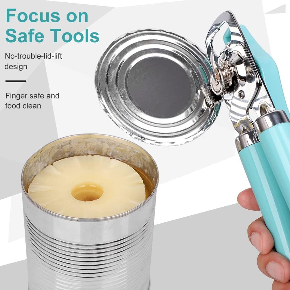 【Comfortable Grip】 This heavy duty can opener is manual handheld with ergonomic big handles, large and easy to grip tightly, light pressure is sufficient to keep the blade engaged with the can lid, very easily open any can subjected. suitable for seniors with arthritis.