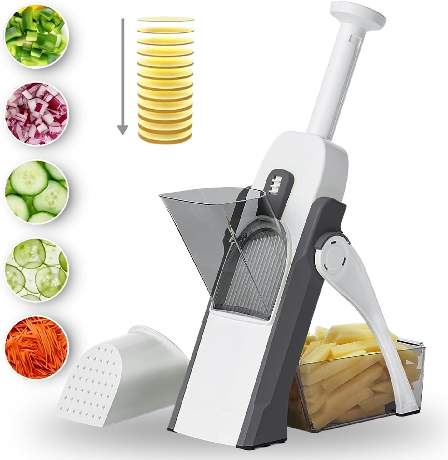EASY TO USE: Our mandoline slicer is simple to operate and has a comfortable grip. It is also lightweight and portable, making it easy to store and carry.
