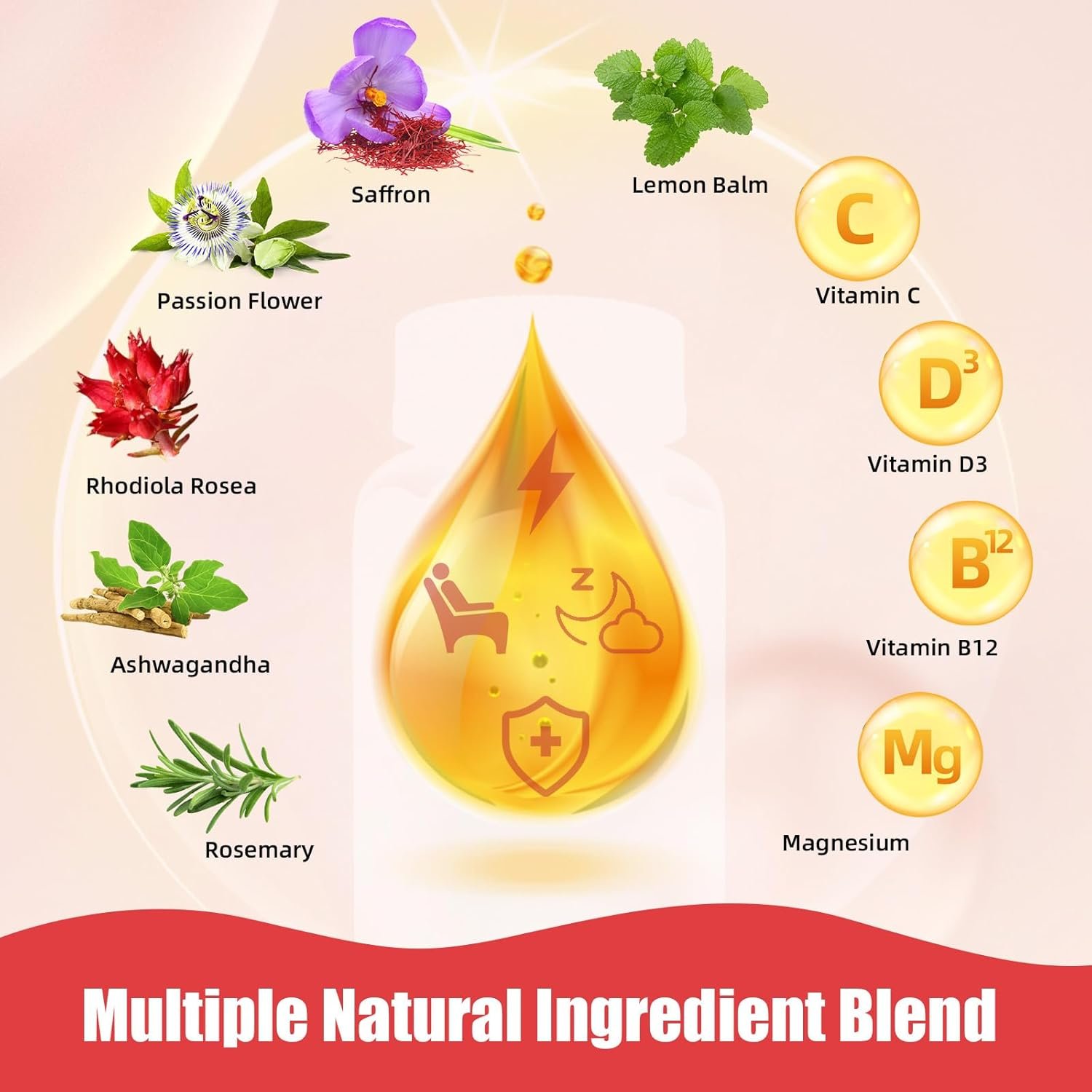 10 IN 1 NATURAL FORMULA: Saffron Gummies are enriched with a variety of natural extracts such as Saffron Extract, Passionflower Extract, Rhodiola Rosea Extract and other important nutrients such as Vitamin B12, C, D3 and Magnesium. These ingredients work synergistically to provide your body with all-round nourishment and support