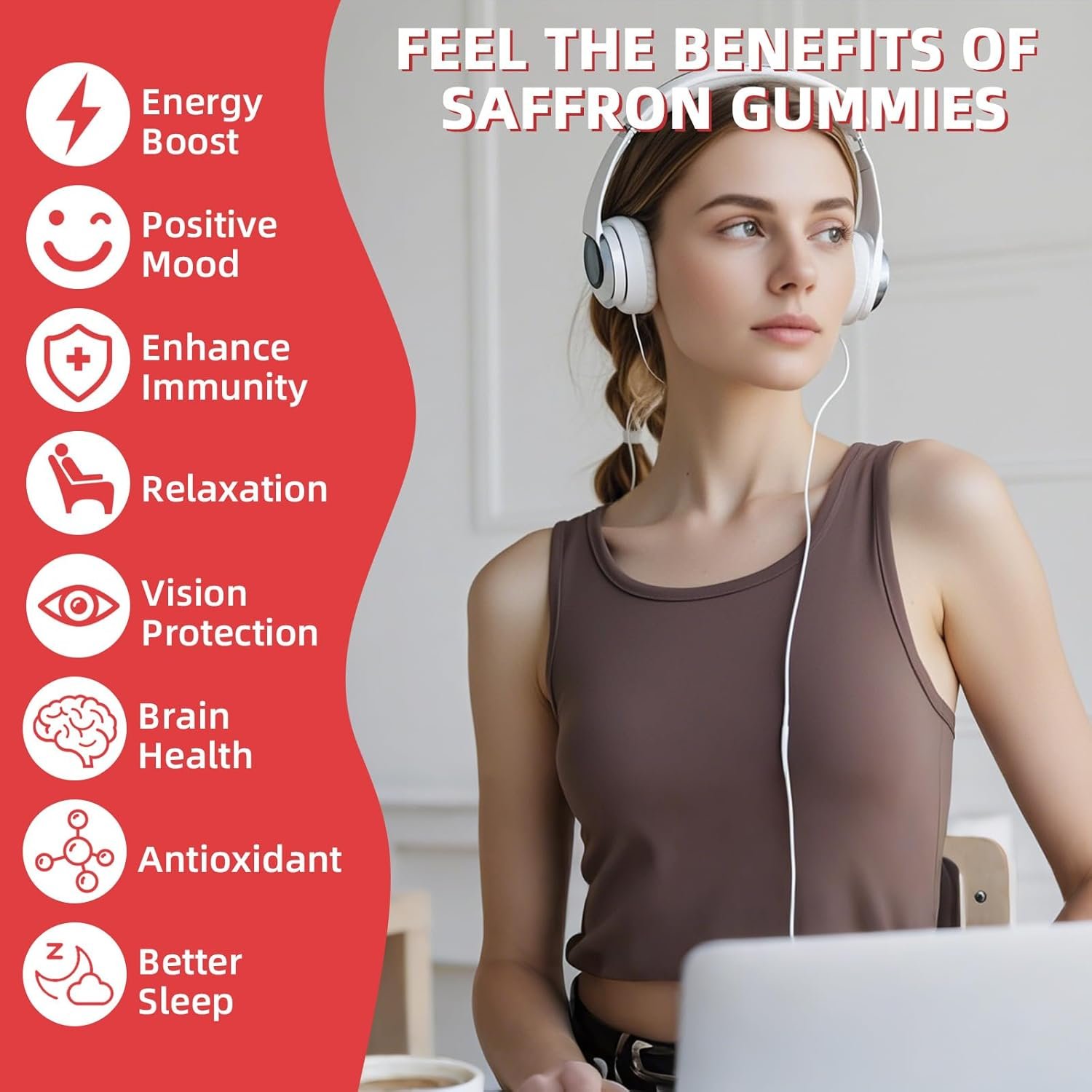 VISION & ENERGY SUPPORT: In our organic saffron supplements, Vitamin B12, C and D3 will not only provide protective support for your eyes during your busy life, but saffron gummies will also act as a source of energy, providing your body with a constant boost of vitality