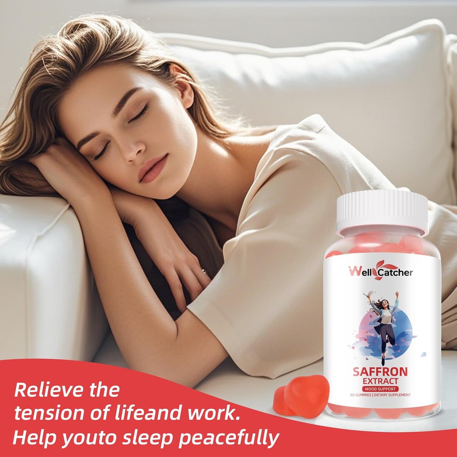 POSITIVE MOOD & BETTER SLEEP: Ashwagandha and lemon balm are known for their soothing and mood-enhancing properties. Enjoying saffron supplement gummies after a busy day will help you relax, say goodbye to unhappiness, and bring you a peaceful sleep in dreamland