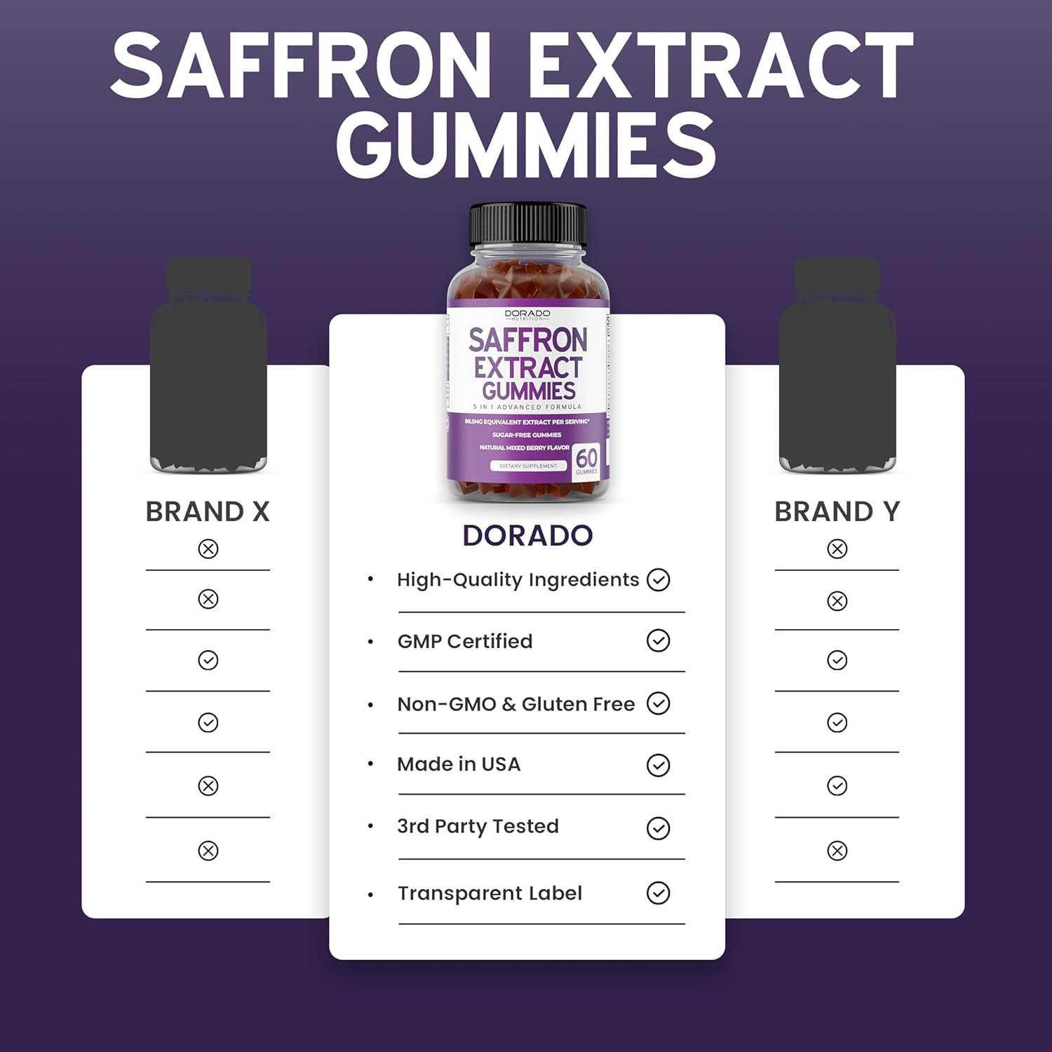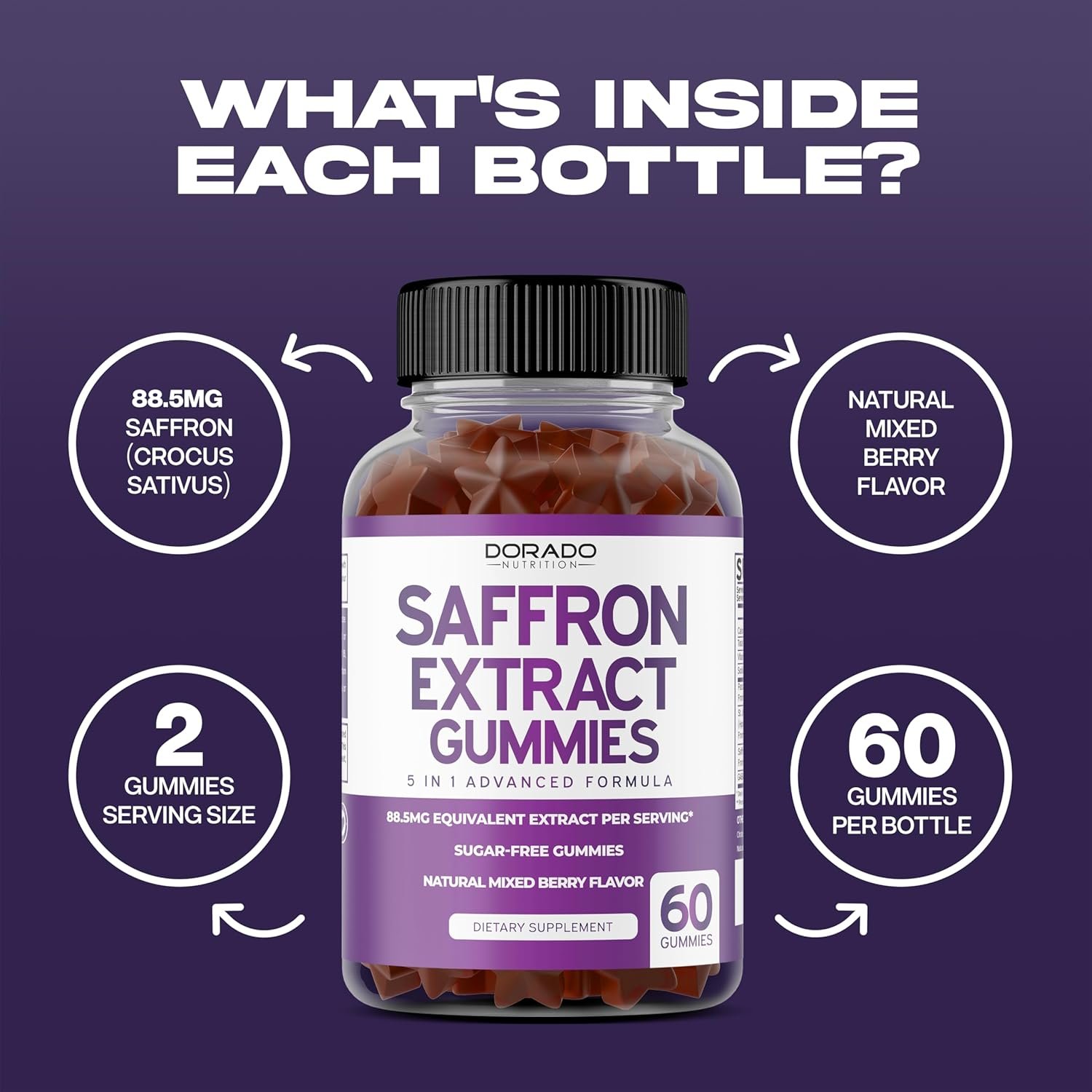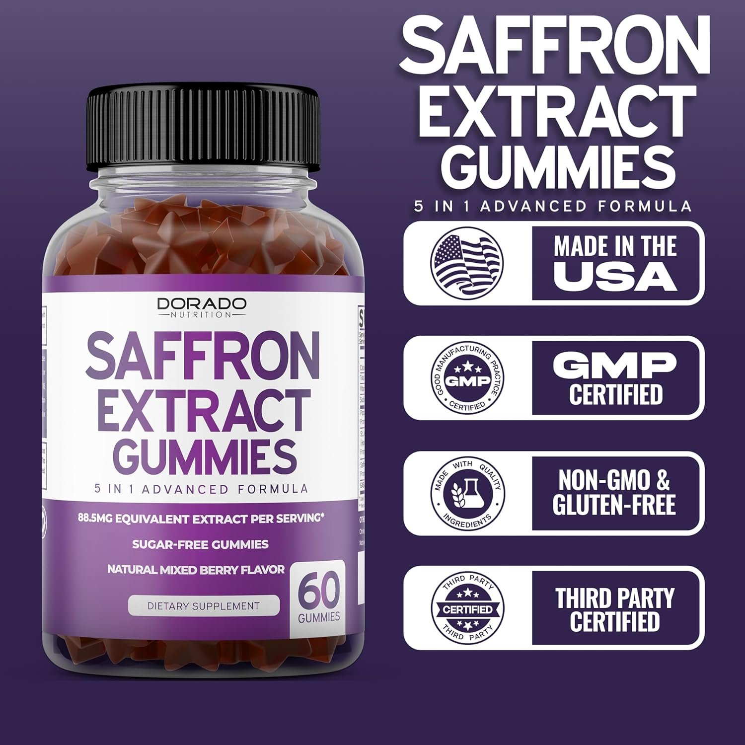 SAFFRON EXTRACT GUMMIES: Elevate your well-being with Dorado Nutrition’s Saffron Extract Gummies, expertly crafted to support emotional balance and overall health.