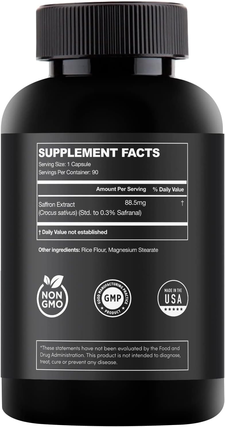 MADE IN THE USA: Trust the quality of our saffron capsules, made in a GMP-certified USA facility. Non-GMO and vegan, they ensure purity and safety in every capsule. Enjoy a premium, effective, and ethically produced energy support supplement.