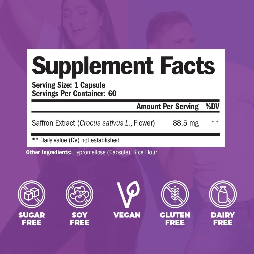 PREMIUM SAFFRON SUPPLEMENT YOU CAN TRUST. Made in the USA in a cGMP-Certified & NSF-Certified with Globally-Sourced ingredients. Non-GMO, Vegan, Gluten-free, Dairy-Free, Sugar-Free and Soy-Free. A convenient flip-top bottle for on-the-go nutrition.