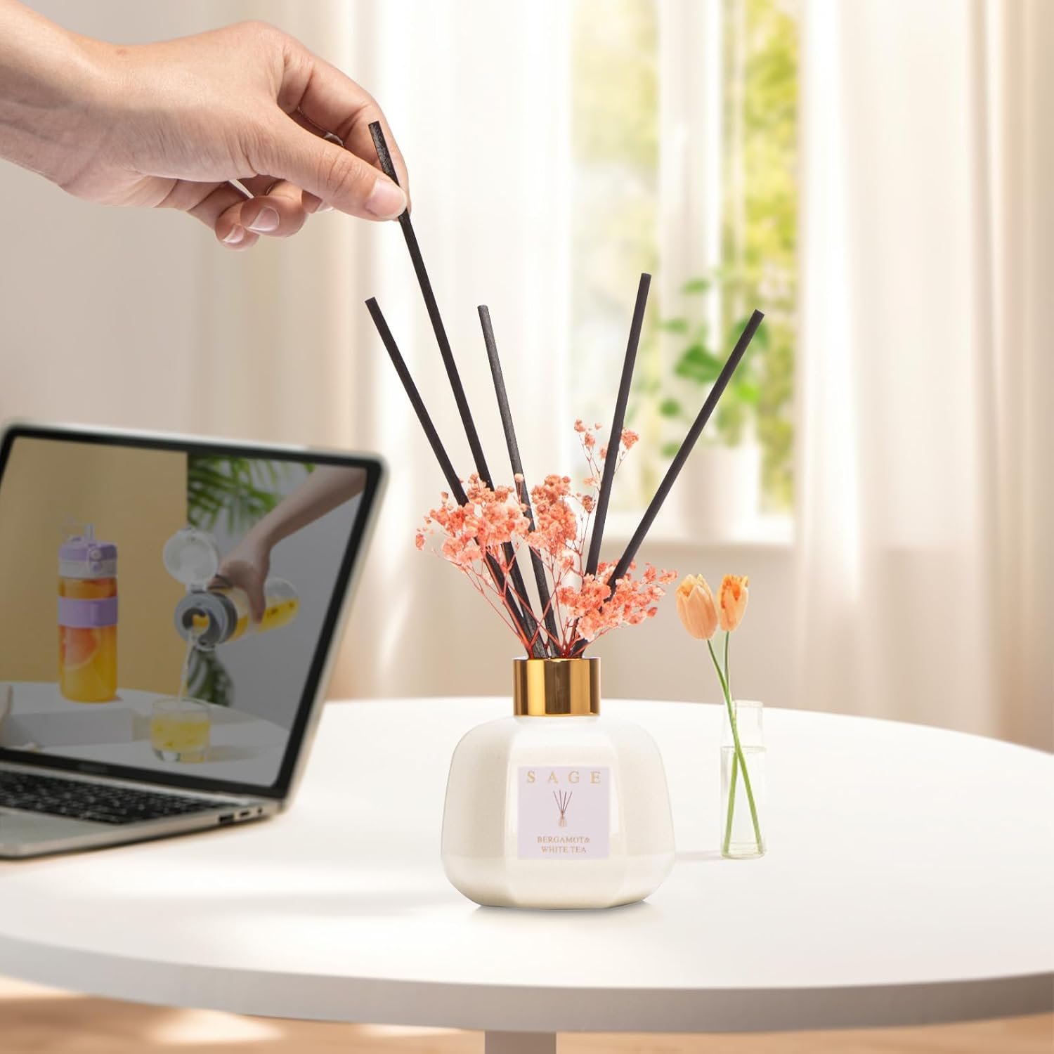 Elevate your home and bathroom counter decor with our stylish home fragrance diffuser, filling your space with a delightful and long-lasting aroma. Ideal for your home, office, bedroom, kitchen, living room, bathroom, and outdoor patio.