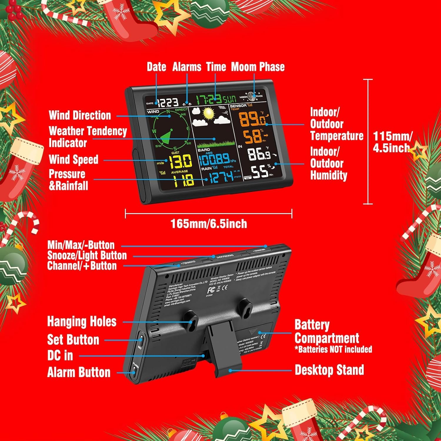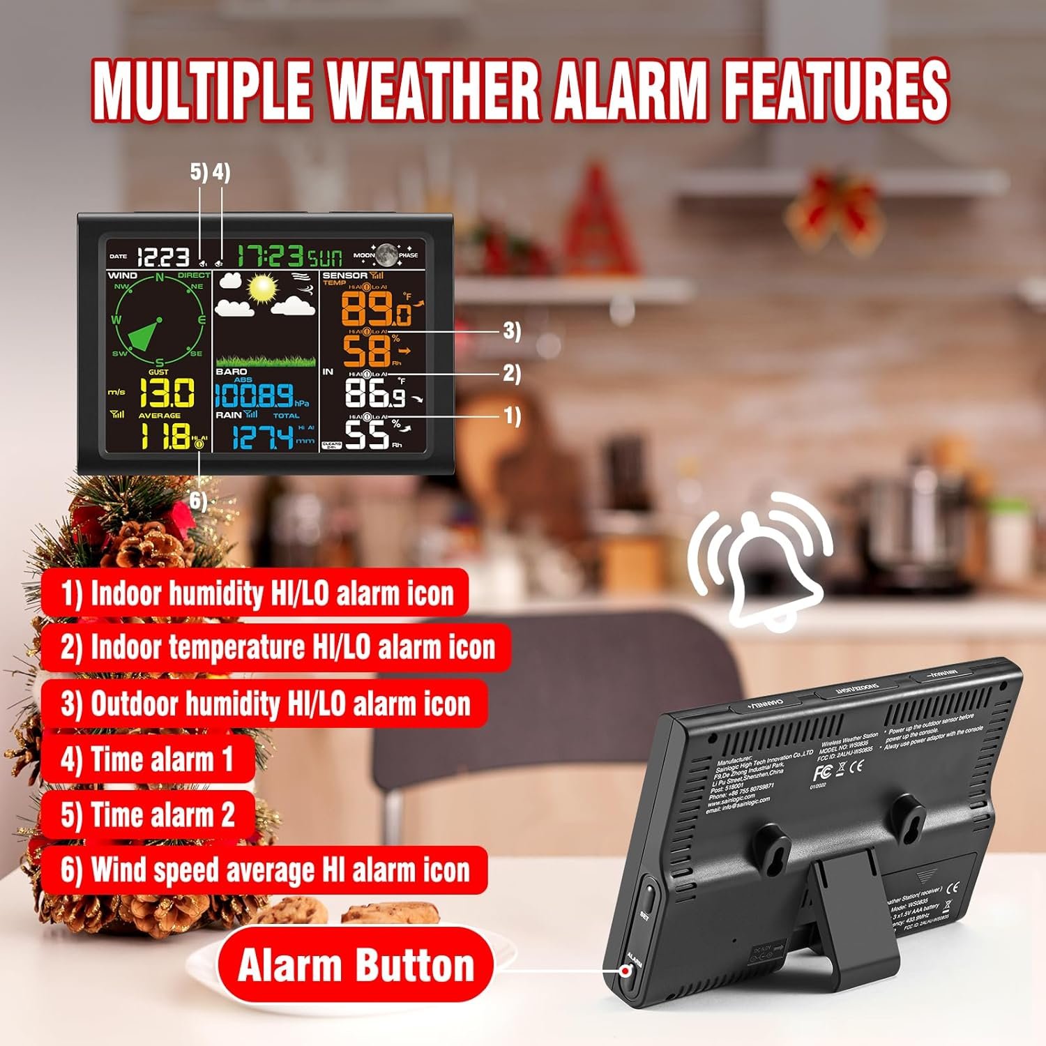 【Advanced Weather Alarm Features】 Multiple alarms for temperature, wind speed, and more alert users with visual and audible signals when thresholds are exceeded. Easily set high/low values