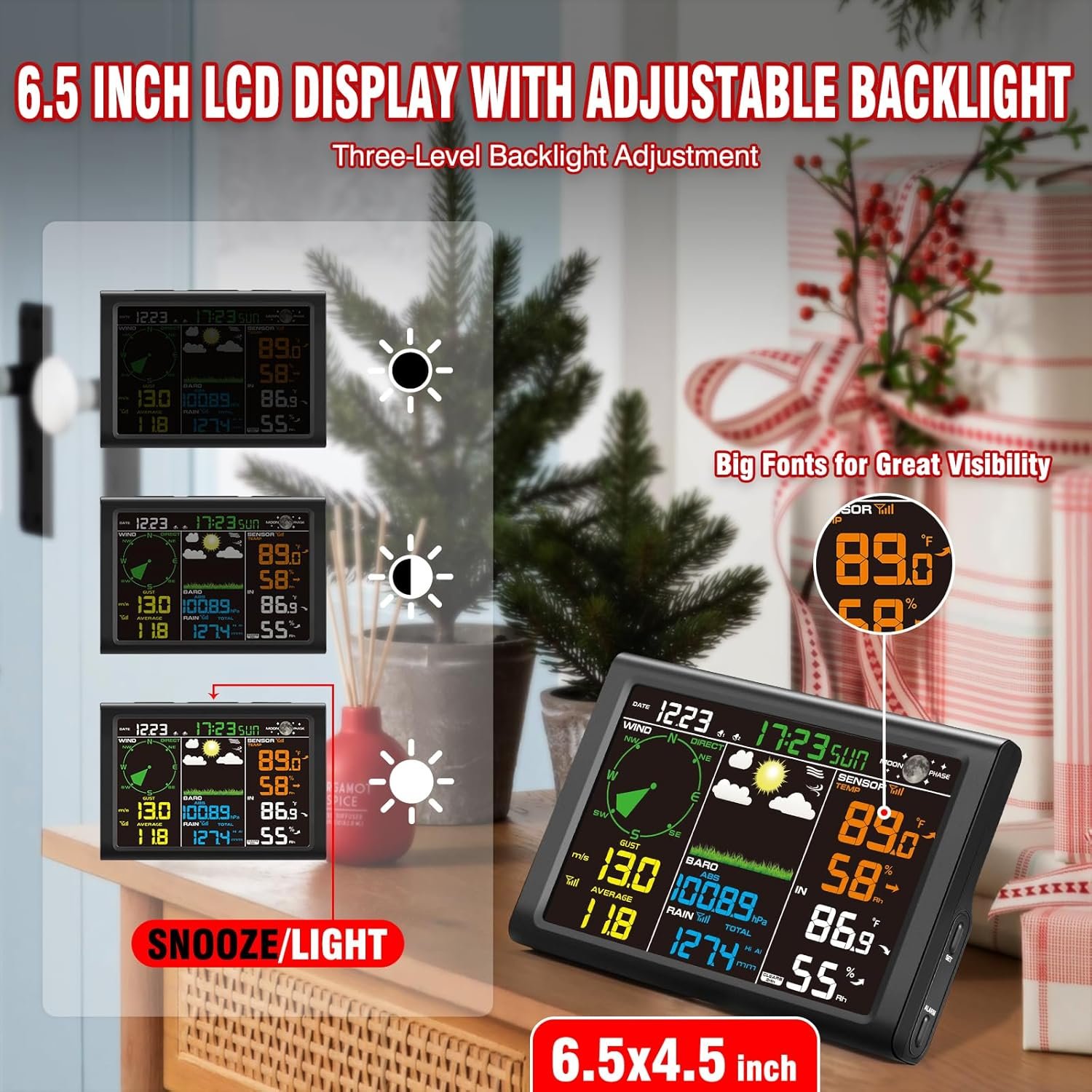 【6.5 inch LCD Display with Adjustable Backlight】The large 6.5×4.5 inch LCD features big fonts for great visibility, with an adjustable backlight for easily reading key metrics like temperature and humidity in any lighting