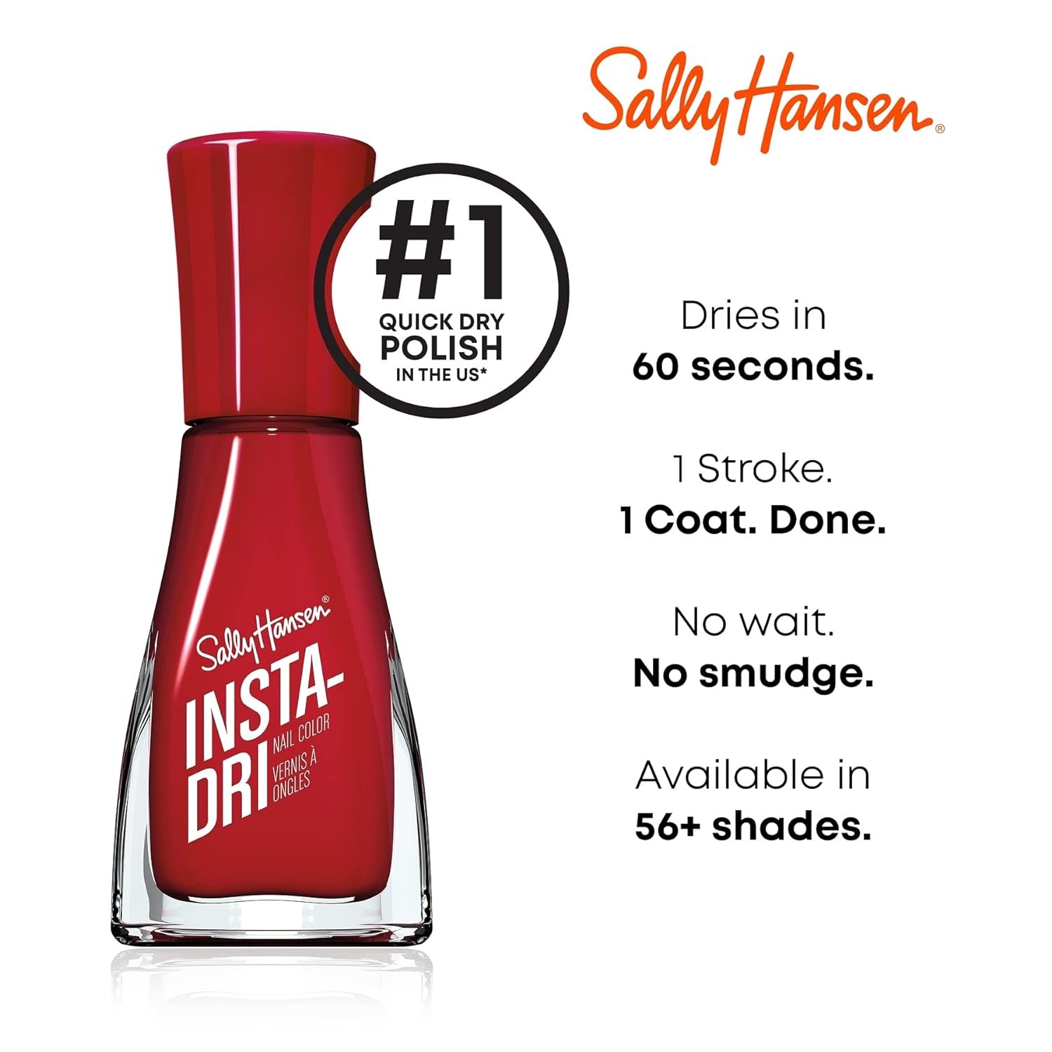1 Stroke. 1 Coat. Dries in 60 seconds. Formulated with a base & top coat for extended wear and stunning shine!