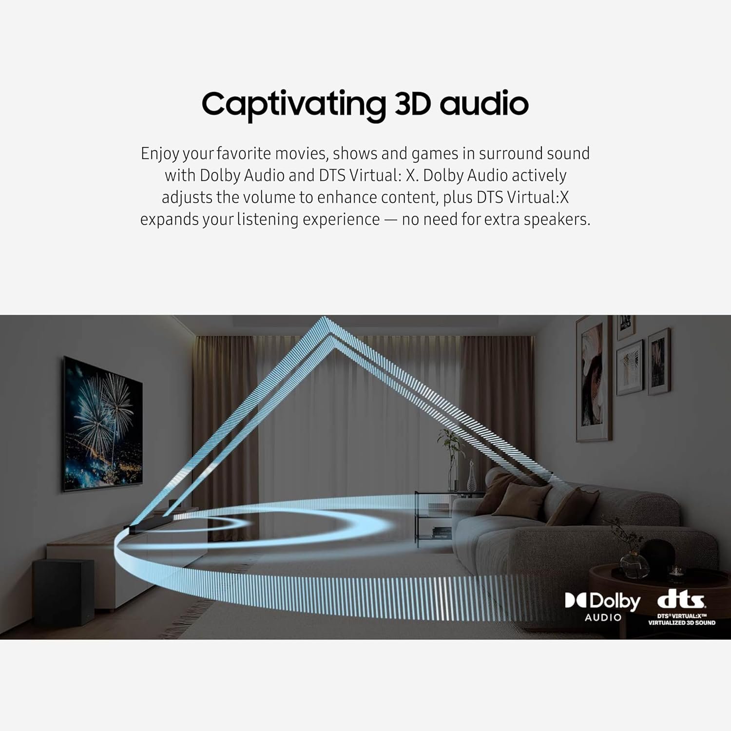 Dolby Audio / DTS Virtual:X: Dolby Audio actively adjusts the volume to enhance content & DTS Virtual:X expands your listening experience, no need for extra speakers | Built-in Center Speaker: Upgrade your sound experience. Hear the action wrap around the room