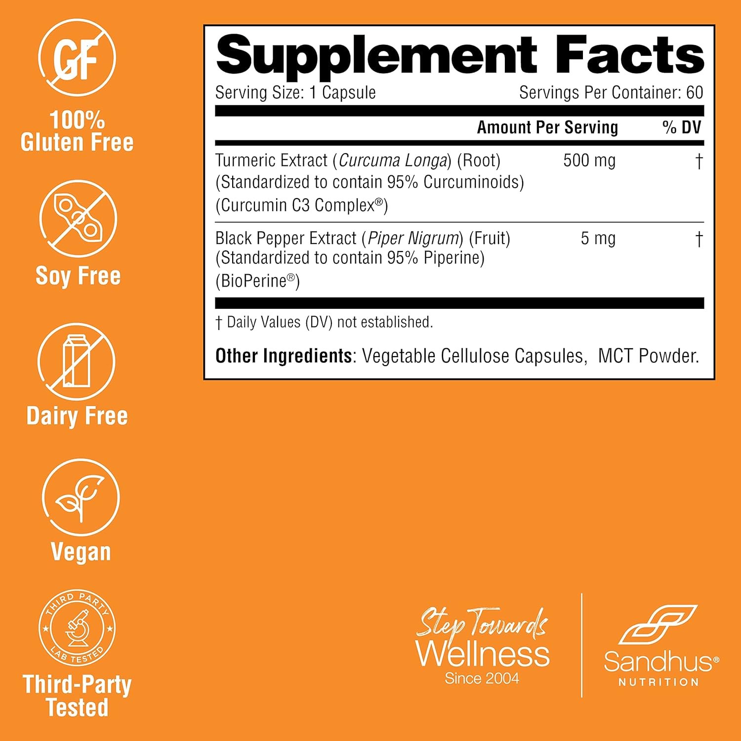 SPECIAL FEATURES –MADE IN THE USA,Sandhu’s Curcumin supplement is manufactured, packed, tested, and distributed in the USA according to strict cGMP norms; One bottle offers 60 servings of 500mg curcumin c3 complex (Standardized 95% curcuminoids) with 5mg of BioPerine (black pepper extract)