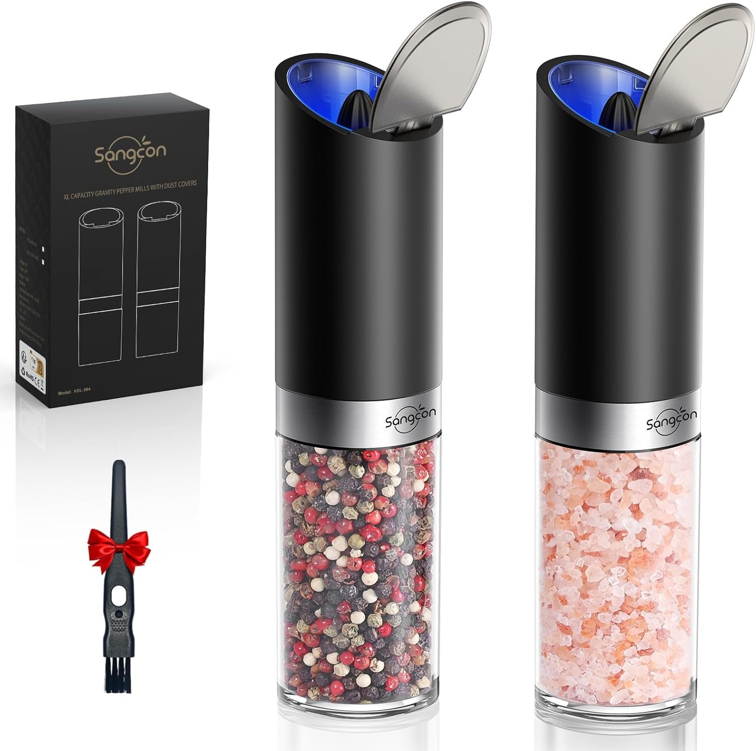 【Large Capacity Hopper】: The food-grade large capacity hopper can hold 7.7 ounces of salt or 4 ounces of pepper, with a 2-inch diameter for easy filling. It can grind a variety of spices, making it suitable for home, outdoor occasions, and as a great gift.