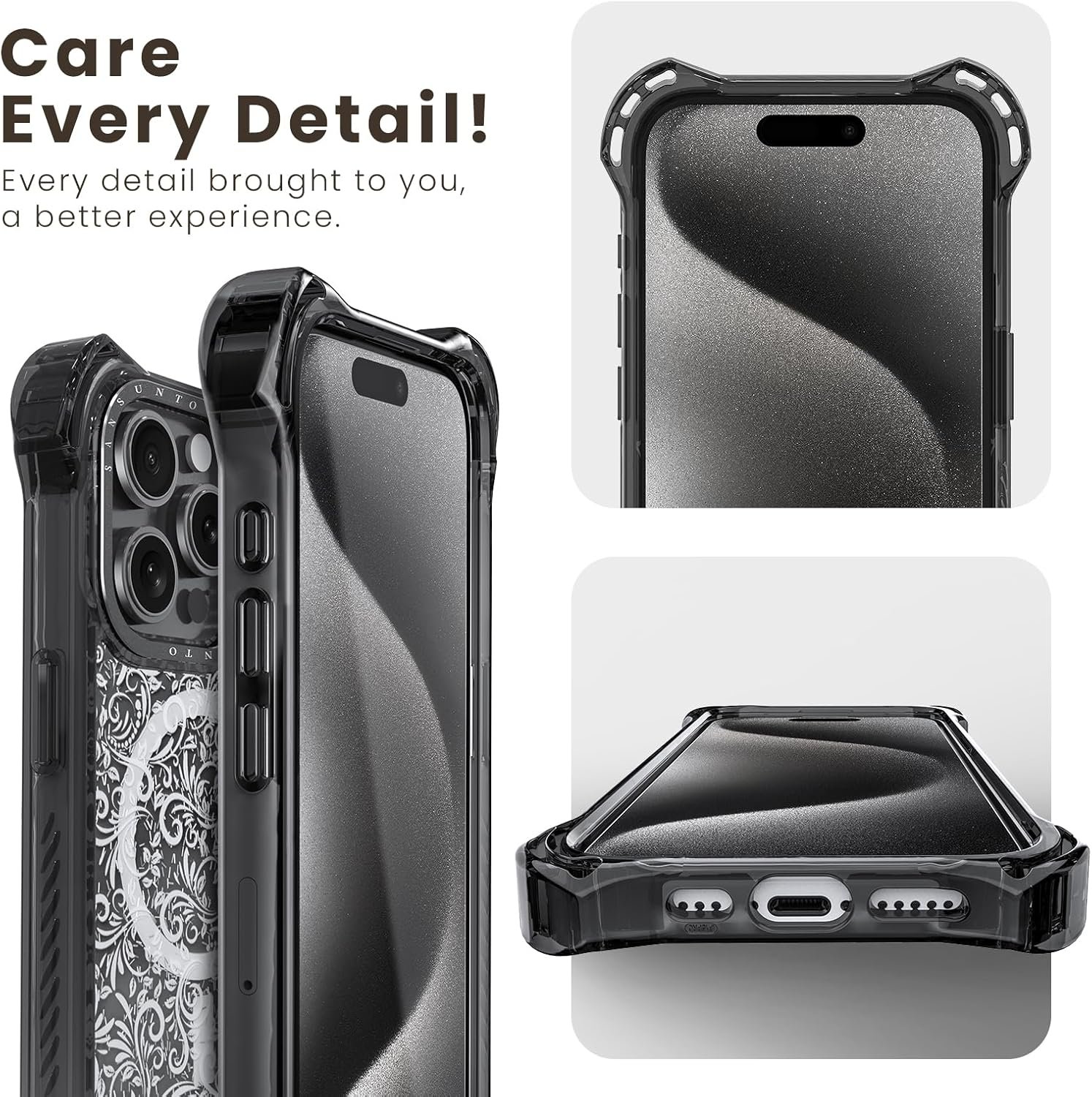 🌸[Compatible with MagSafe] This iphone 15 pro max protective case perfectly aligned built-in magnetic ring, compatible with MagSafe as well as Qi wireless chargers, magnetic car mounts, magnetic kickstand holders, magnetic wallets and etc. Stronger magnetic attraction makes faster and more stable charging without falling easily.