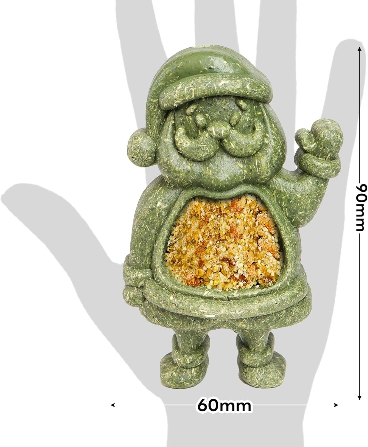 The whole Santa body is a long-lasting chew treat, while there is a tasty filling in the belly as an extra challenging bonus.Belly filling excepted, we make this Santa super durable and sturdy, so your small animal can enjoy months of chewing fun.