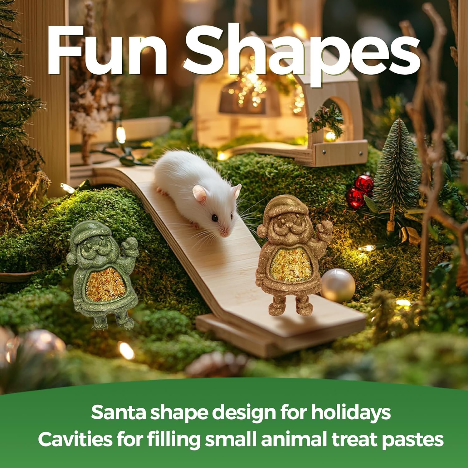 HOLIDAY COLLECTION: Festival shape, pet-safe material and good durability, this 2-piece package provides your hamsters, gerbils, chinchillas or guinea pigs with the whole December of chewing fun.