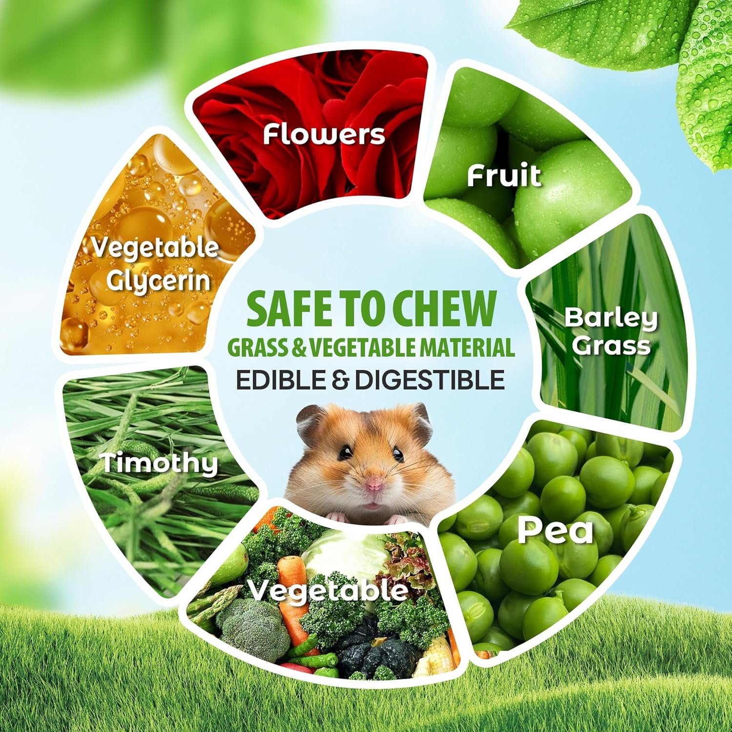 EDIBLE TOY & TREAT: Made with healthy & tasty grasses, vegetables and fruits, it’s 100% natural and safe.
