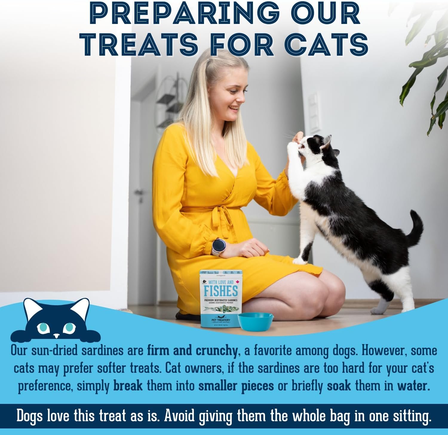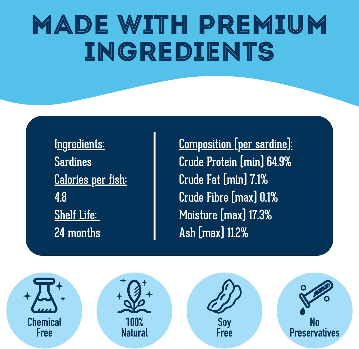 NATURAL TREATS FOR DOGS & CATS WITH MAXIMUM NUTRIENT RETENTION – Our sardine treats are a 100% natural dog treat which is slow-dehydrated, preserving vital nutrients, packed with vitamins and minerals, and healthy oils. Our sardines are sun-dried and are usually firm and crunchy. Dogs love the texture, but some cats prefer less crunchy treats. Cat owners please take note: if the treats are harder than your cat’s preference then break the sardines into smaller pieces or soak briefly in water.