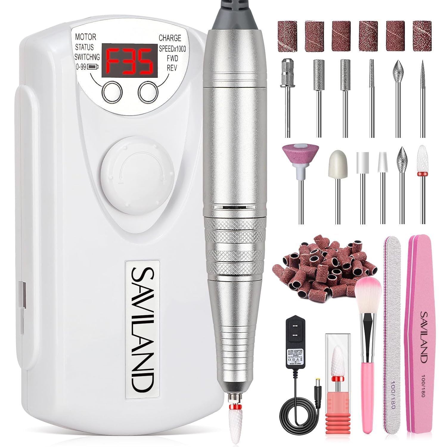 Unleash the Power For Acrylic Nails: With an impressive 35000RPM motor, Saviland nail drill offers lightning fast speed and precision with quieter sound Say goodbye to manual filing and hello to effortless shaping, smoothing, and polishing. Get salon-quality results right at home!