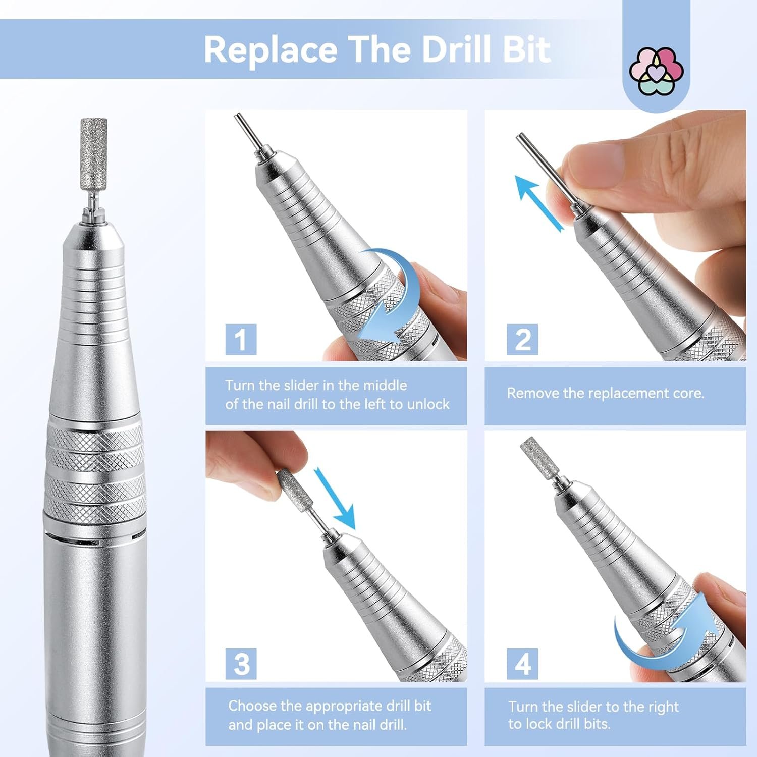 Versatile Bits for Every Need: Saviland nail drill kit includes a total of 12 top-notch nail drill bits, ensuring you have the perfect tool for every task. Crafted from durable metal, smooth ceramic, or gentle sanding bands, these bits effortlessly cater to all your nail care needs.