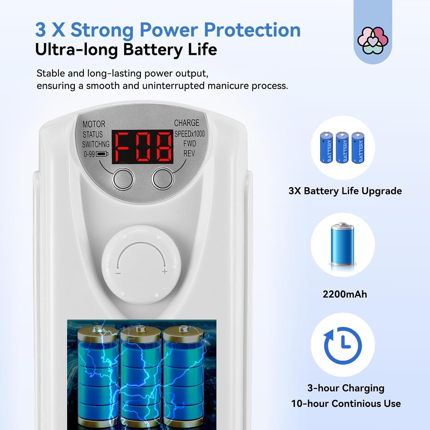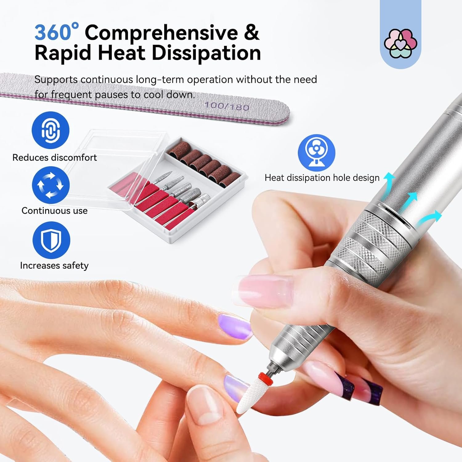 Easy to Use & Control: Designed with convenience in mind, our nail drill features adjustable speed settings, allowing you to customize the intensity of your manicure. The compact and ergonomic design ensures a comfortable grip and temperature, making it easy to maneuver and control for a long time.