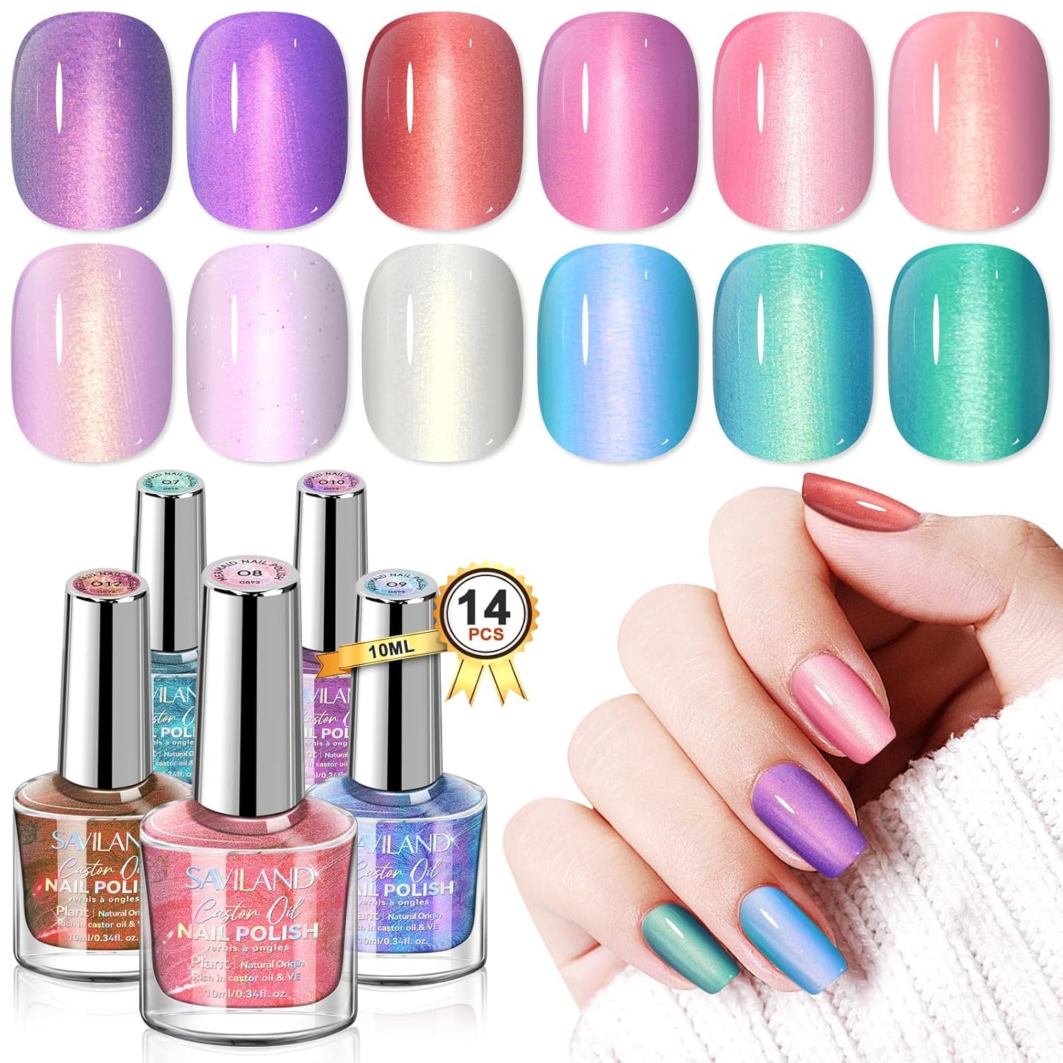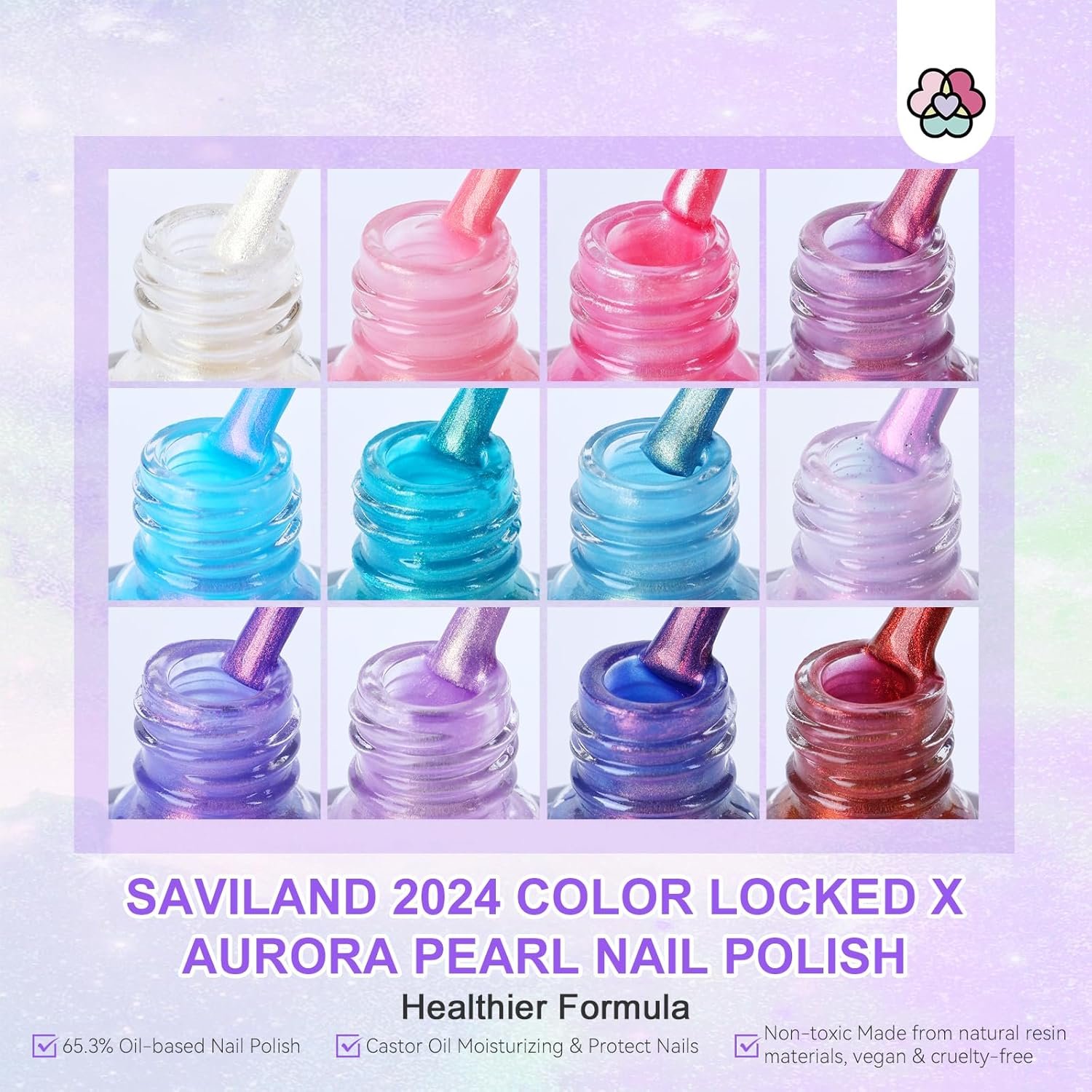 Trendy Pearl Nail Polish Set: SAVILAND introduces 12 stunning, trendsetting shades with iconic colors. These include captivating pinks, blues, greens, purples, and whites with a mesmerizing mermaid-like sheen. The glitter pearl nail polish provides flawless coverage, ensuring your nails have a brilliant, shiny, and enhanced appearance