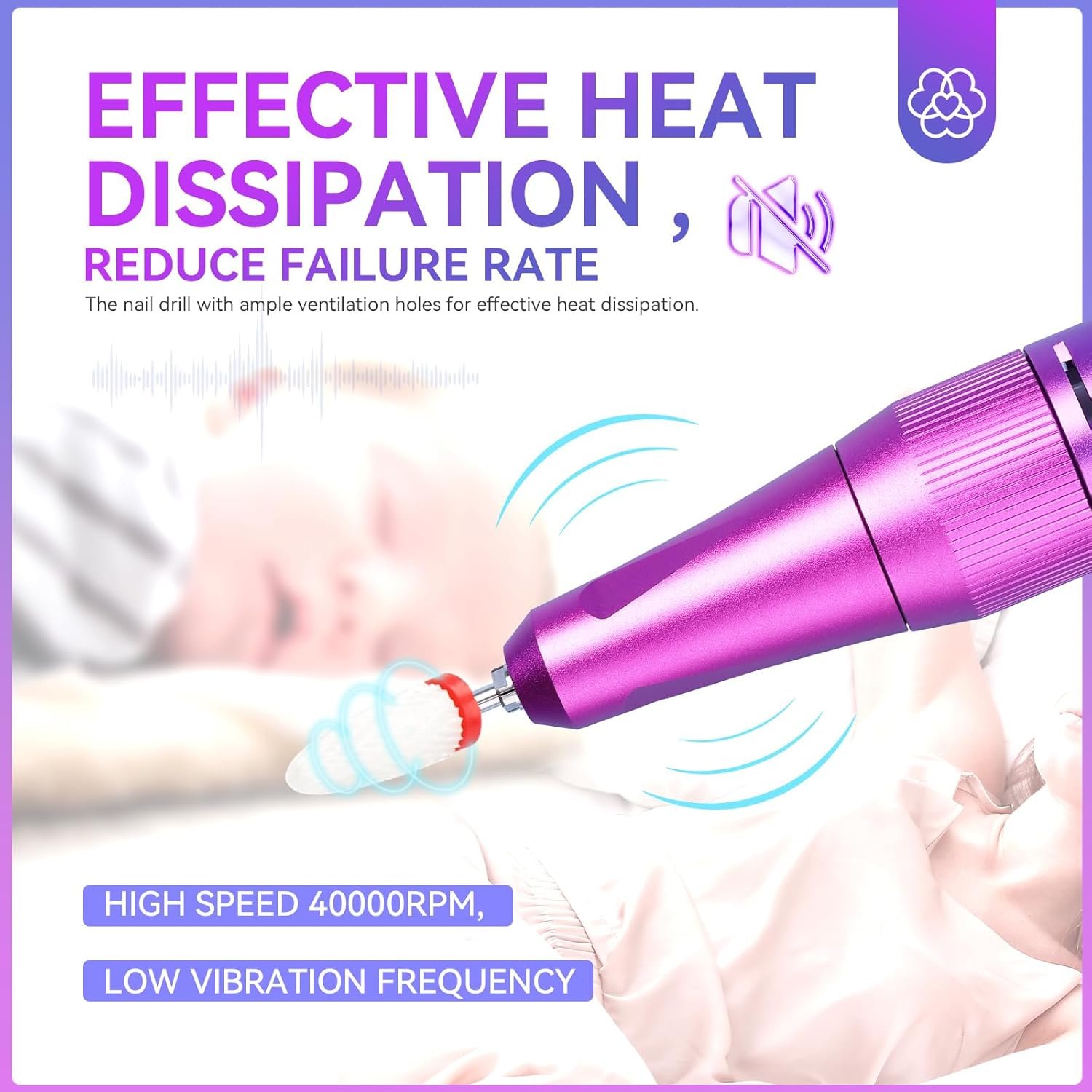 High Speed & High-quality: Saviland nai drill kit with the function of adjustable 0-40000 RPM speed, much higher than others, users can choose the appropriate speed and direction according to their needs during using. Suitable for different types and hardness of nails. Low heat, low noise, and low vibration, no worry about disturbing others.