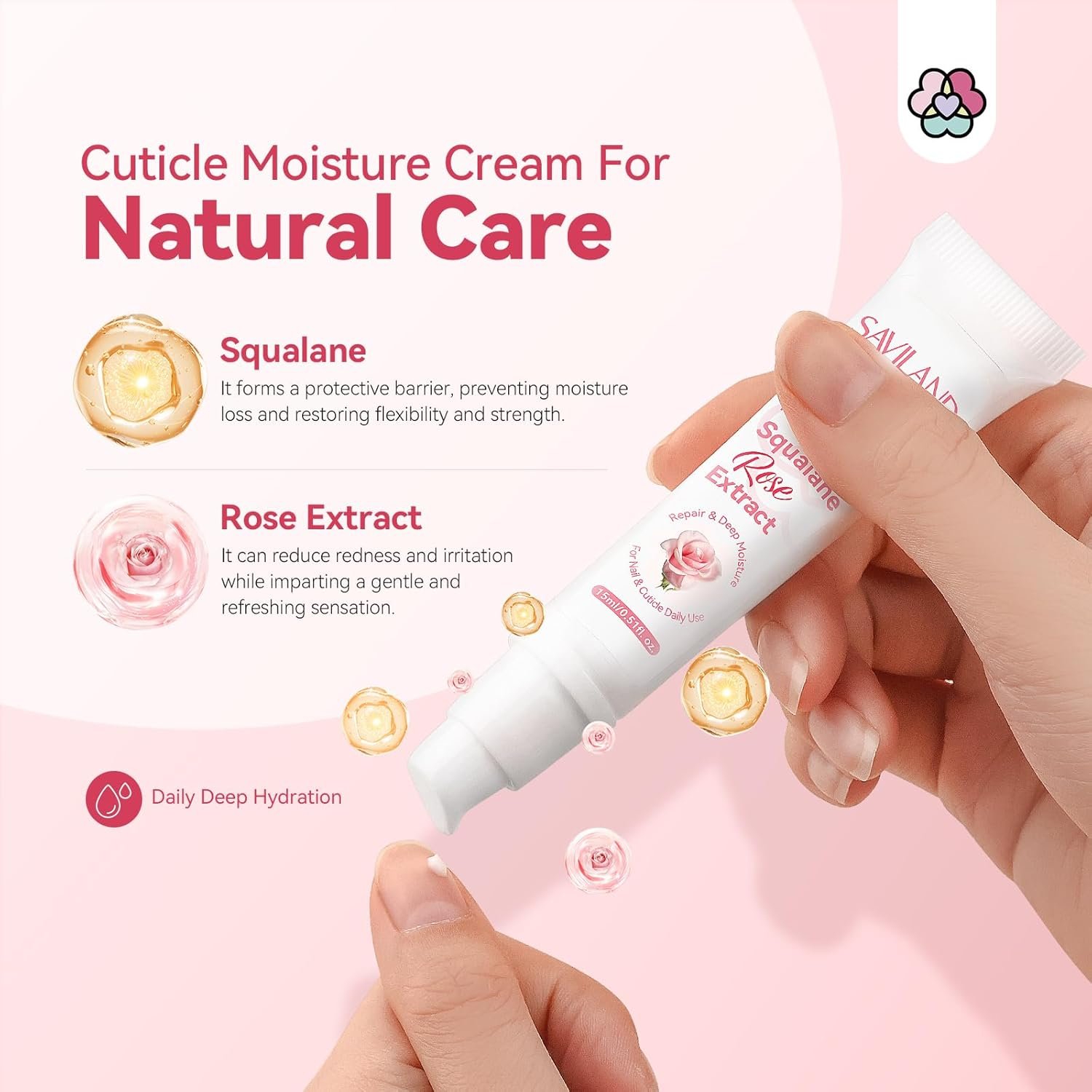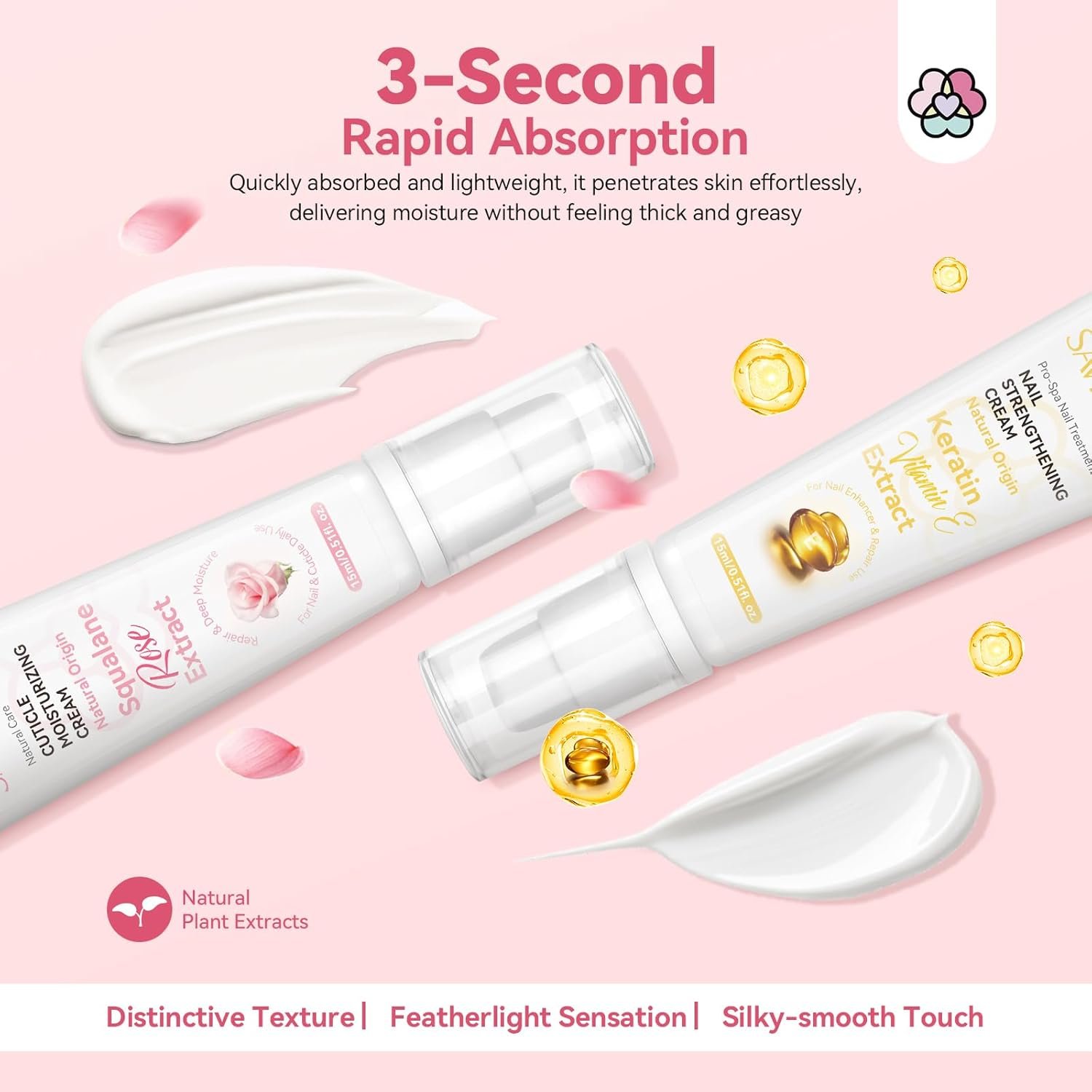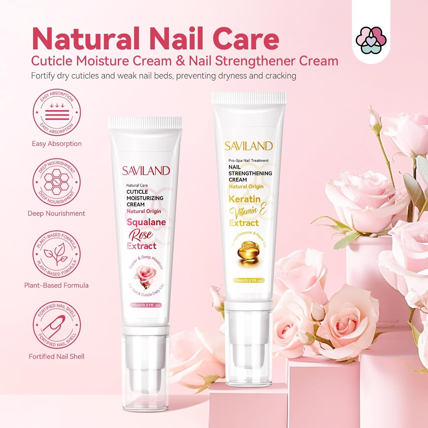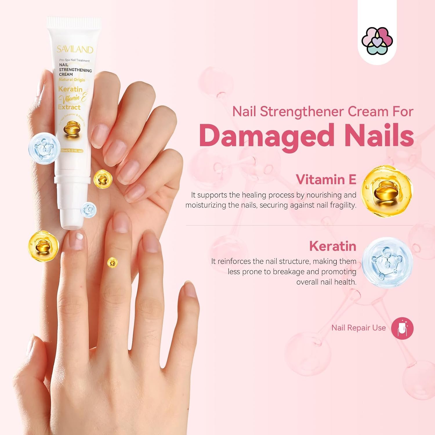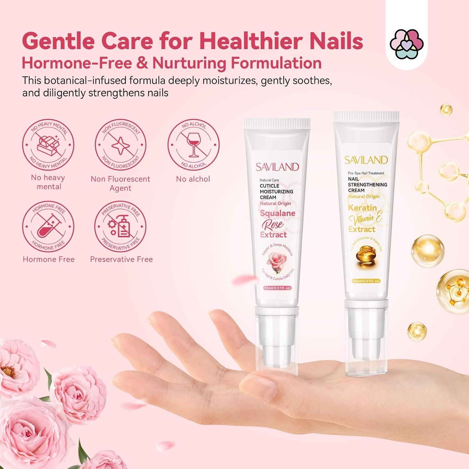 Gentle Natural Ingredients: SAVILAND nail strengthener and growth cream is formulated with squalane, rose oil, keratin and vitamin E, which help nourish and repair your nails without harsh chemicals or topical nail polish. They could minimize the risk of irritation or adverse reactions and provide a soothing and comfortable experience
