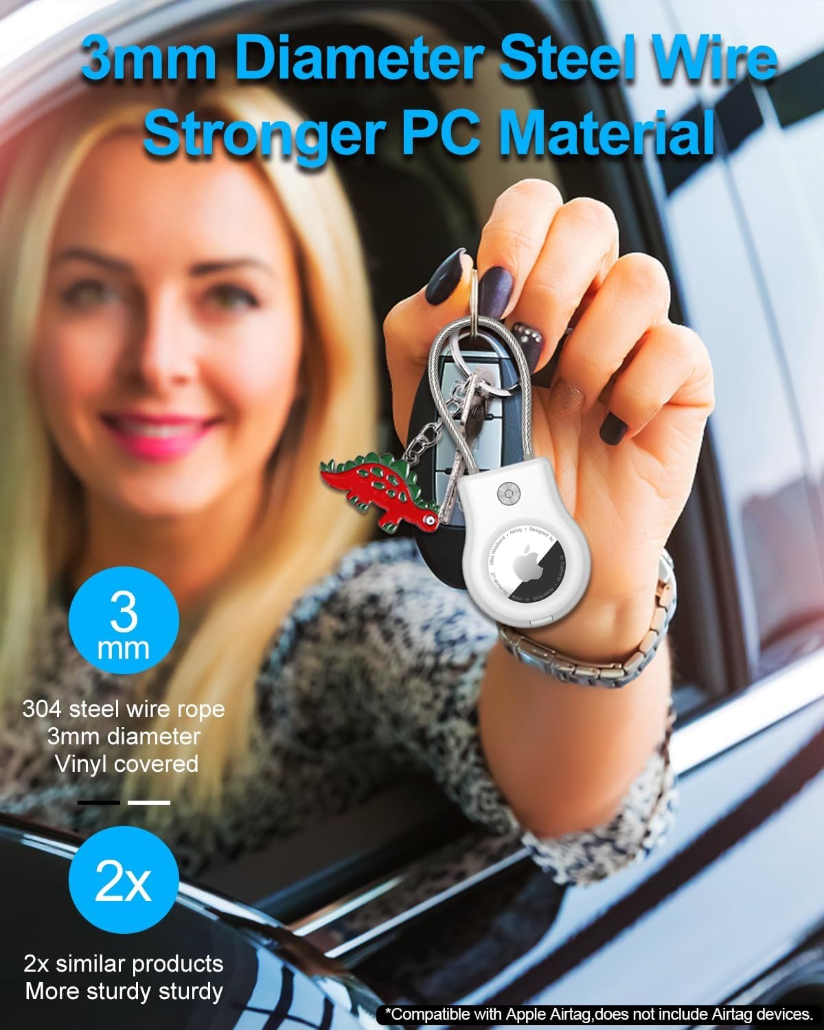 This Apple Airtag keychain holder uses a sturdy steel wire rope with a length of 13cm and a diameter of 3mm, which can accommodate more than ten keys. Air tag case is compatible with Apple Airtag and does not affect the signal, making it an excellent air tag keychain.