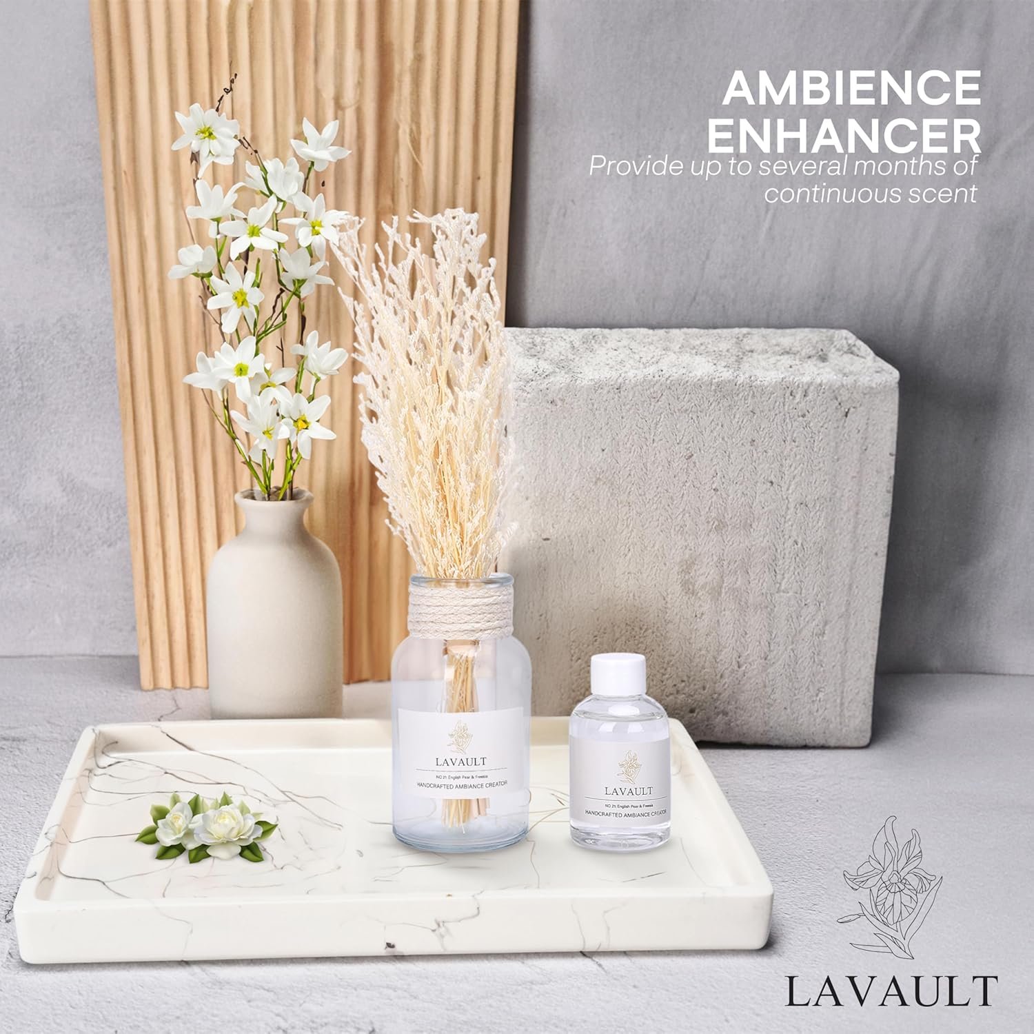 LONG-LASTING FRAGRANCE: Our scented reed diffuser provides a continuous scent for several months, creating a calming and relaxing atmosphere in any room of your home or office