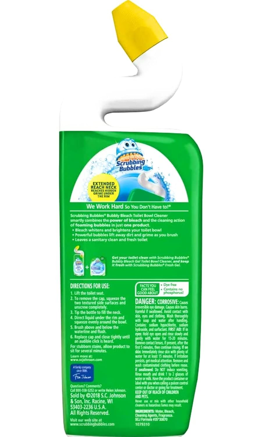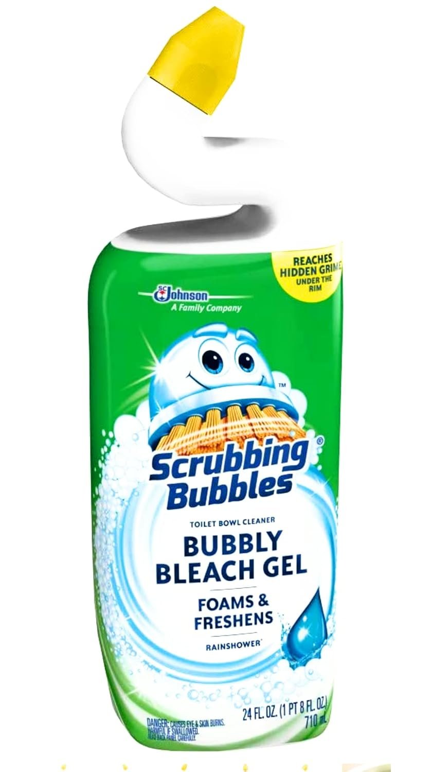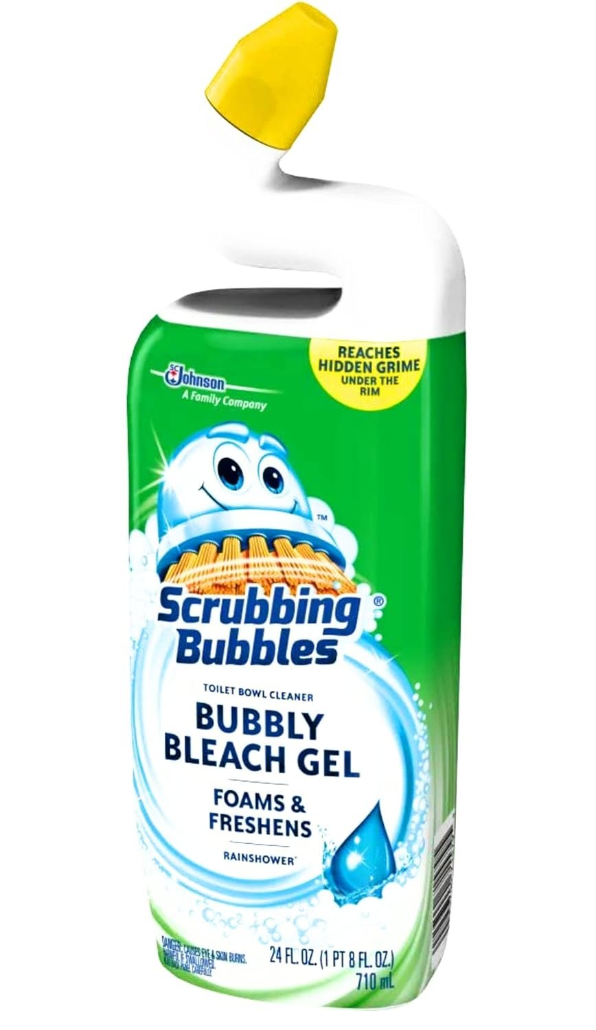 Scrubbing Bubbles Bubbly Bleach Gel Toilet Bowl Cleaner is a powerful bleach cleaner that foams and freshens as it cleans. This bleach toilet cleaner comes with an extended-reach neck that gets under a toilet’s rim, where grime hides best � bringing a bowlful of foamy freshness, from toilet rim to toilet water. A complete clean that smells pristine? That’s cleaning reinvented.