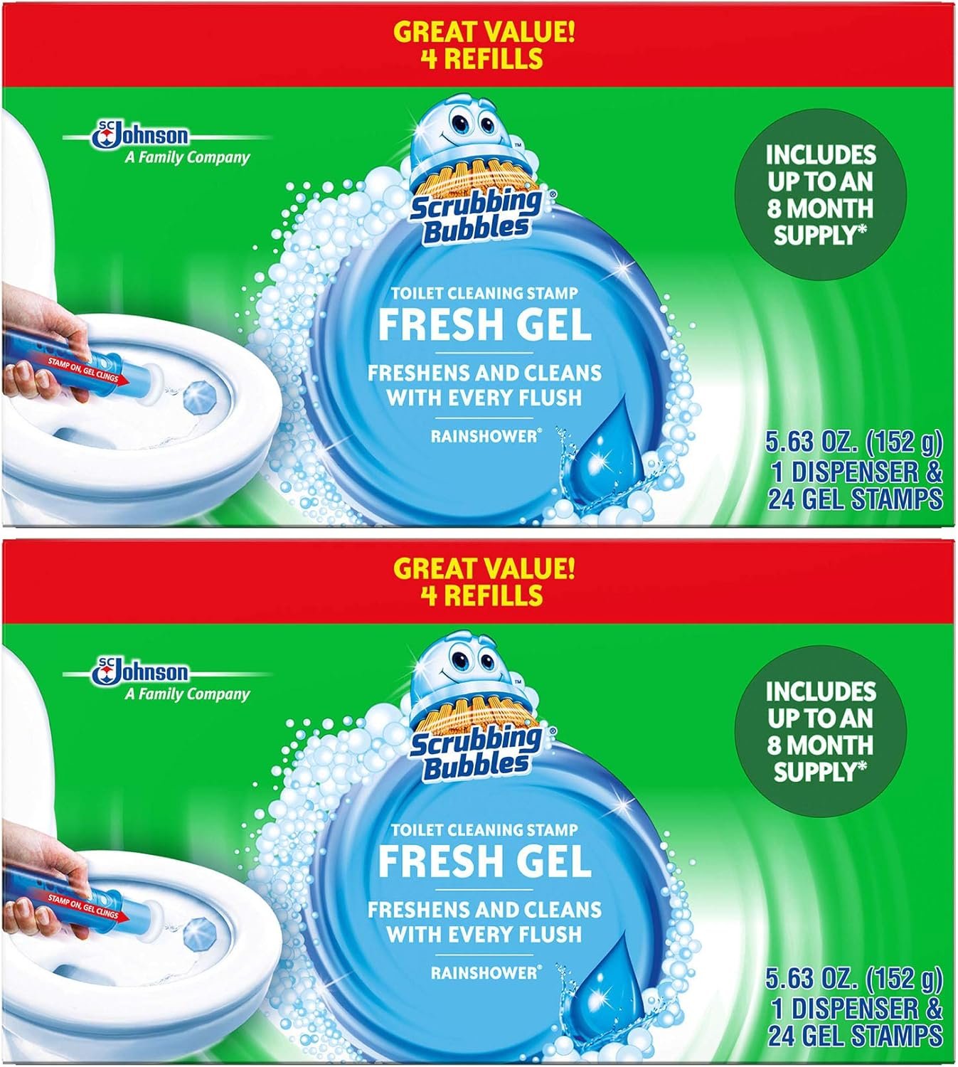 Scrubbing Bubbles Fresh Gel Toilet Cleaning Stamp Refill Value Pack, Rainshower, 24 Stamps, 2 Pack