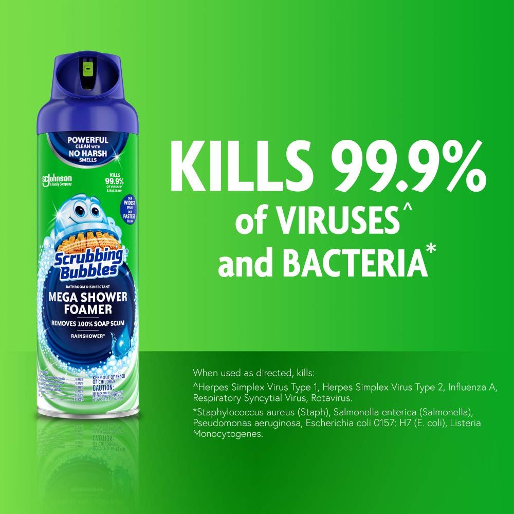 Scrubbing Bubbles Shower Foamer Aerosol kills 99.9% of viruses & bacteria*