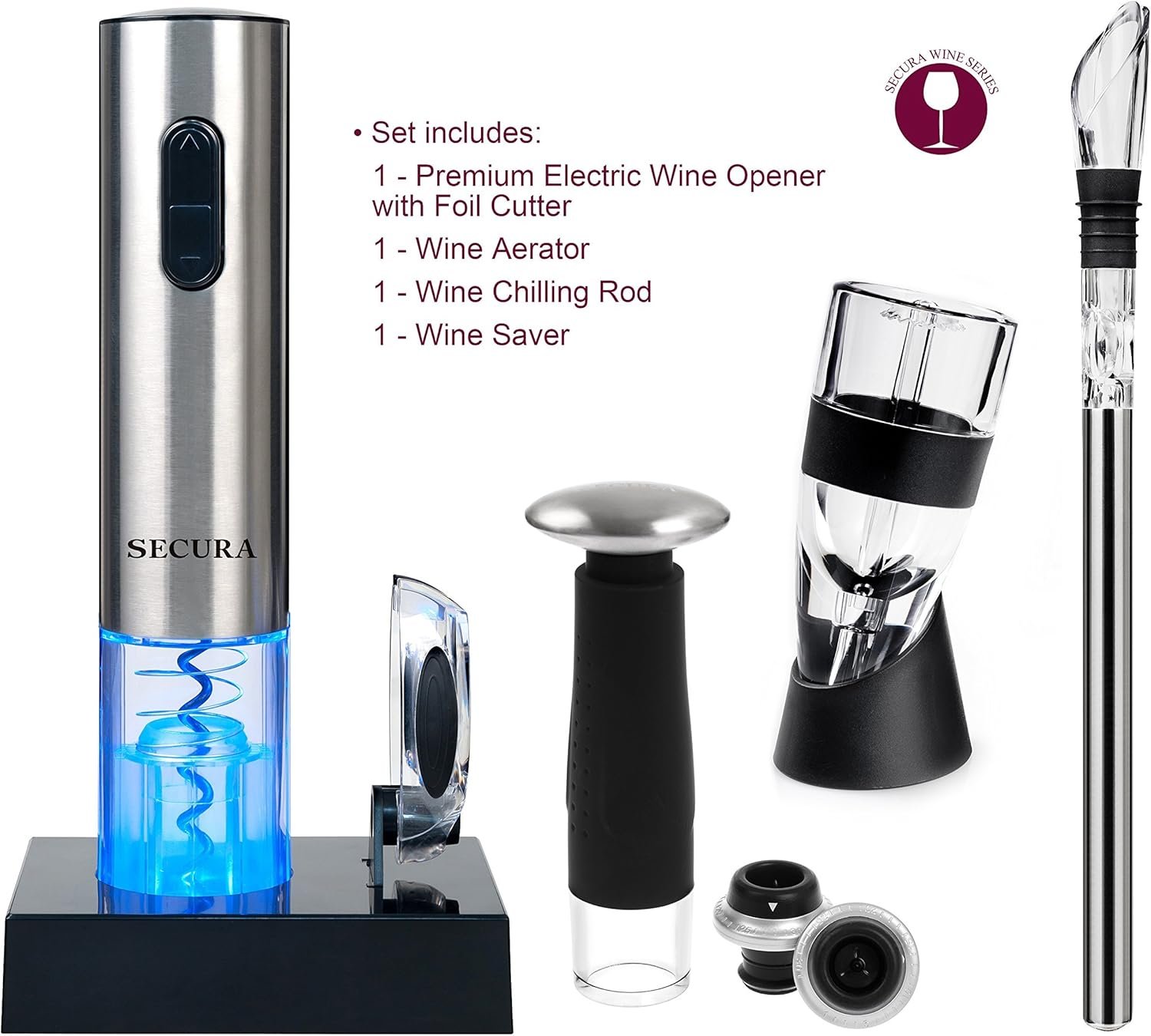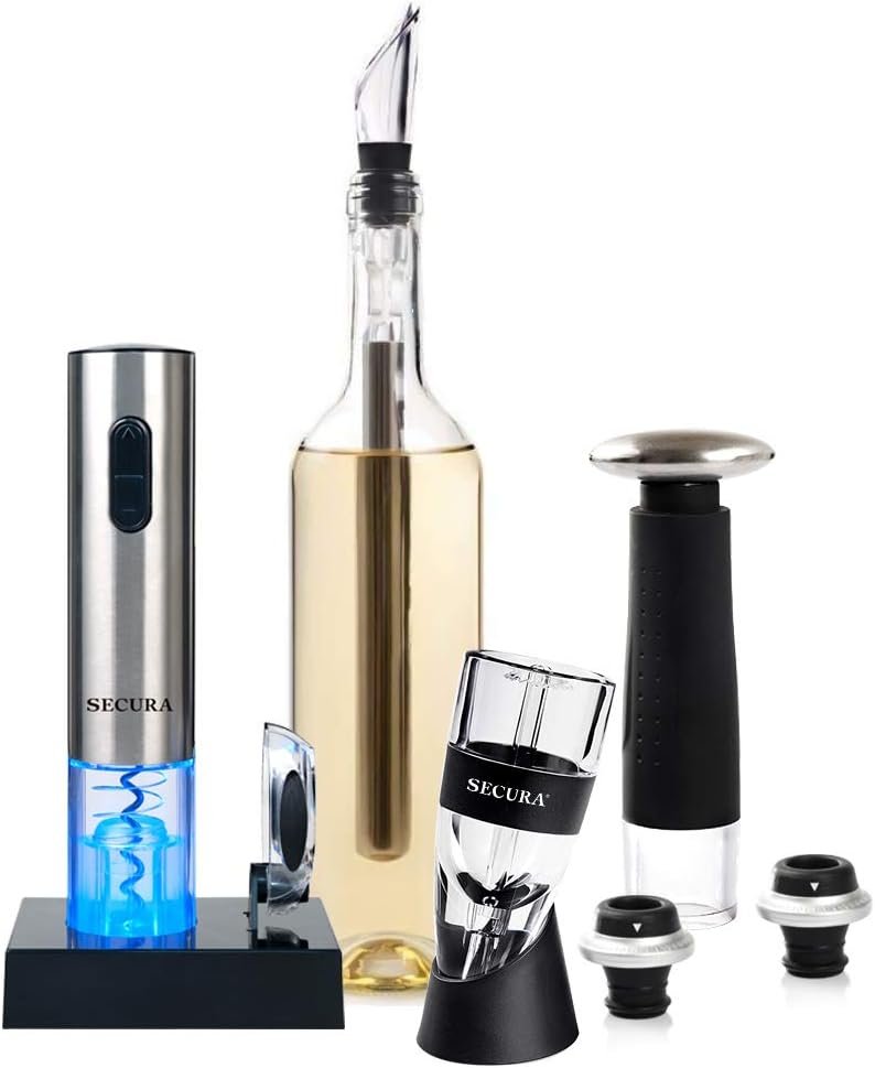 Secura 12-Piece Wine Accessories Set Electric Wine Opener, Wine Foil Cutter, Wine Aerator, Wine Saver Vacuum Pump and 2 Wine Stoppers