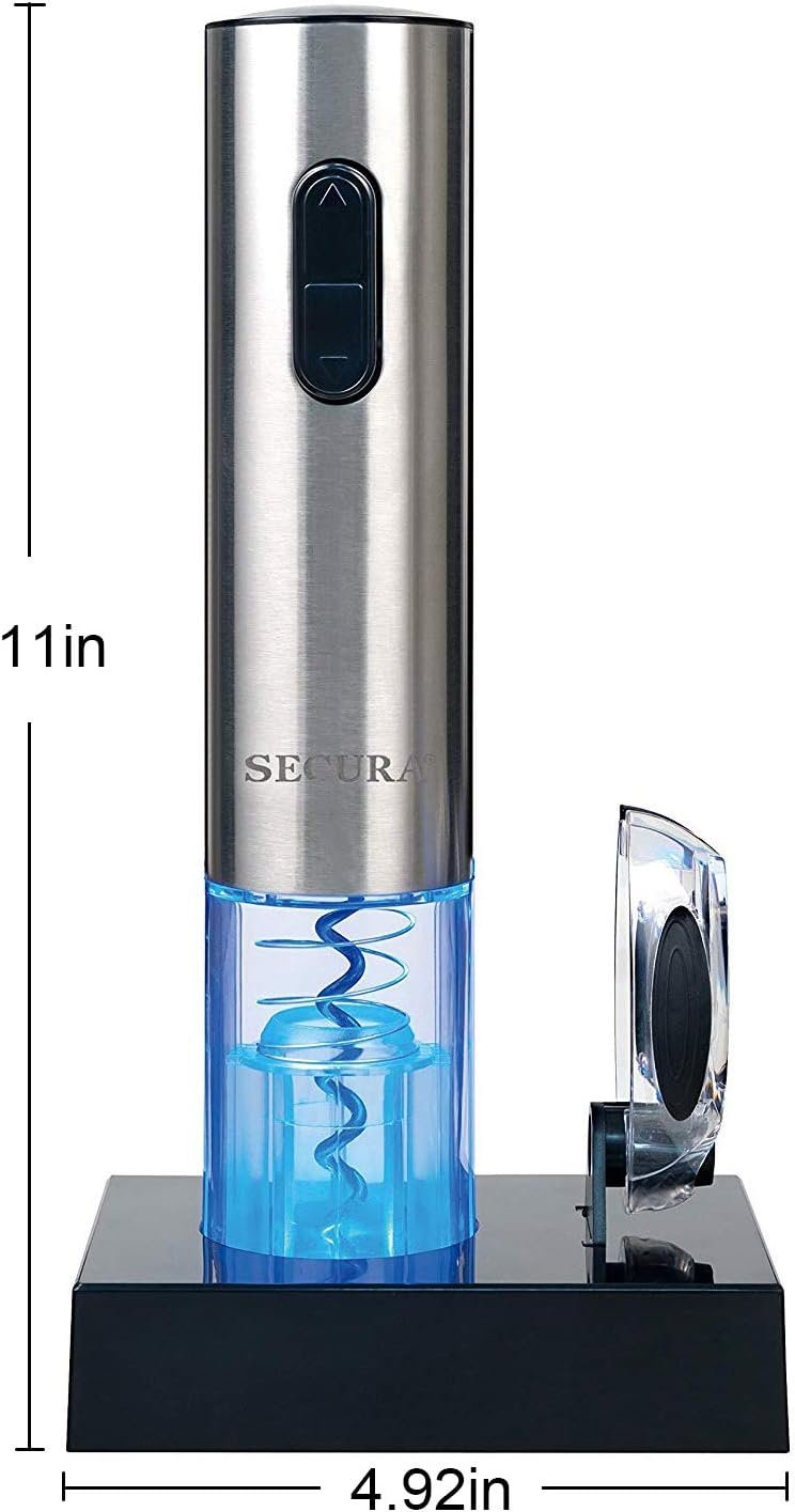Built-in rechargeable battery, Secura model SWO-3N electric wine bottle opener opens up to 30 bottles on a single charge.