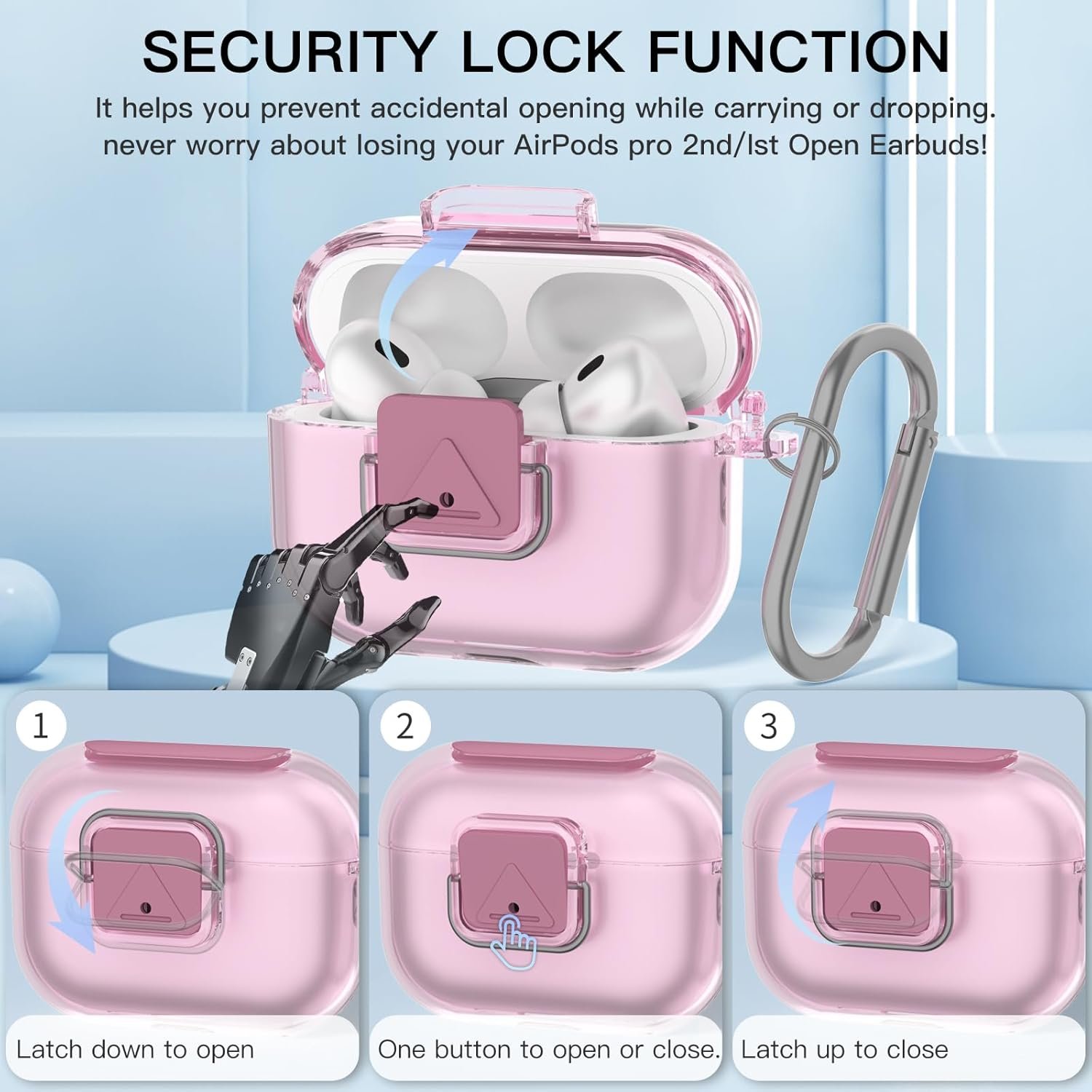 ✔️【Security Lock Design】The case adopts an integrated design, and the security lock design can firmly fix the case cover to prevent the earbuds from being lost due to accidental opening of the AirPods pro case. The top cover can be easily opened or closed with a single click. Ensure that the AirPods pro 2 protective case cover fits securely. You never have to worry about losing your AirPods pro 1/2 earbuds again!