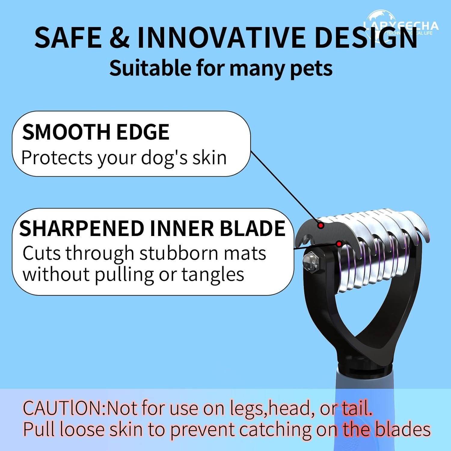 How to Use:Use it by first calming and loving your pet, and be sure to pull loose skin such as neck and belly tight to prevent it from getting stuck in the blade. Use minimal pressure to easily glide along the fur to remove tangled hair.