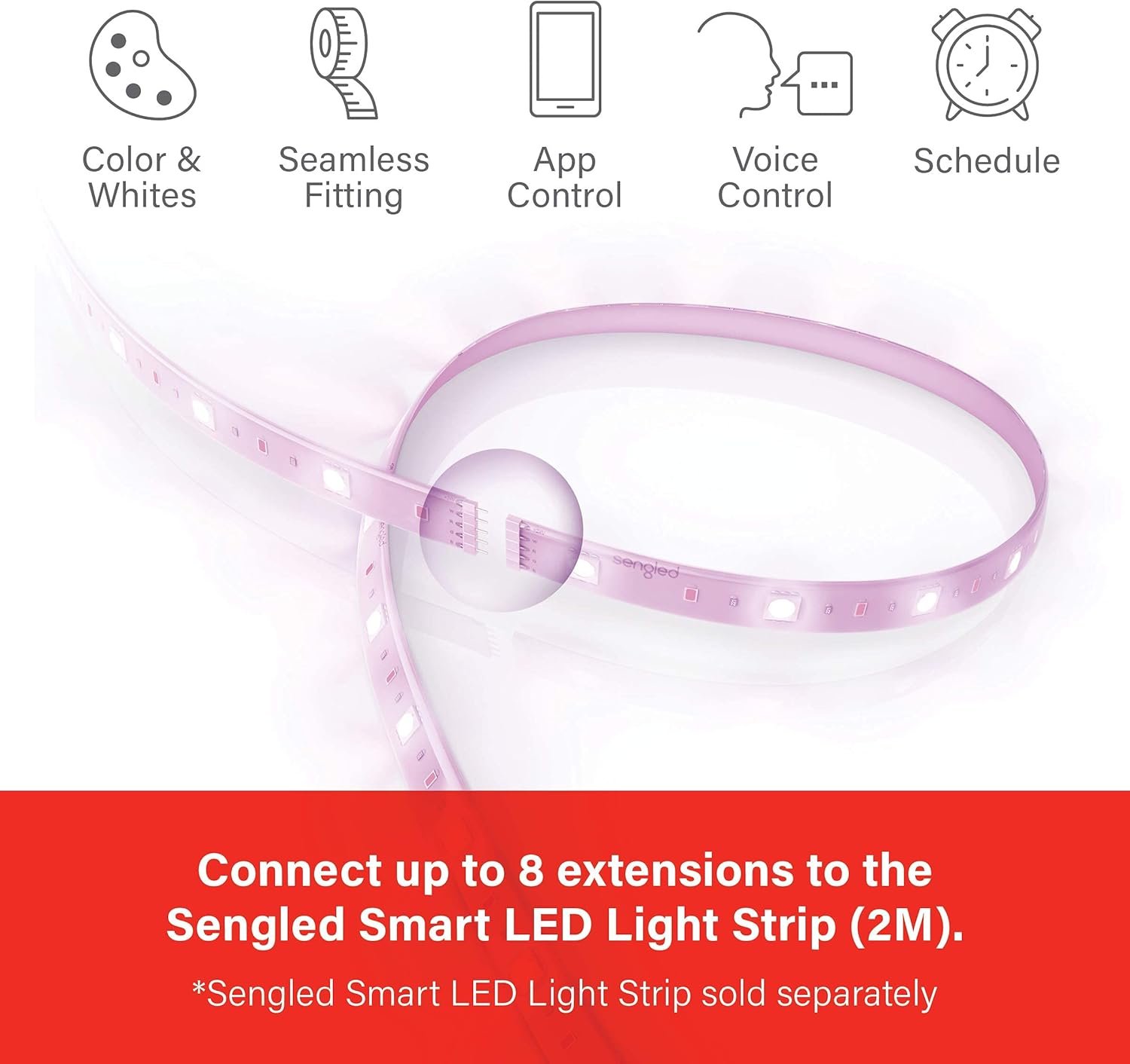 Versatile Lighting Option: Perfect for adding task lighting or accent color to any room, smart led strip lights are a great option for unique locations like under kitchen cabinets and islands, along bedroom walls, or lining a fireplace mantle or staircase. The 2M (6.56ft.) strip can be shortened for the perfect fit by cutting along pre-marked lines and can be extended by connecting to other Sengled Smart Zigbee Light Strip Extensions.