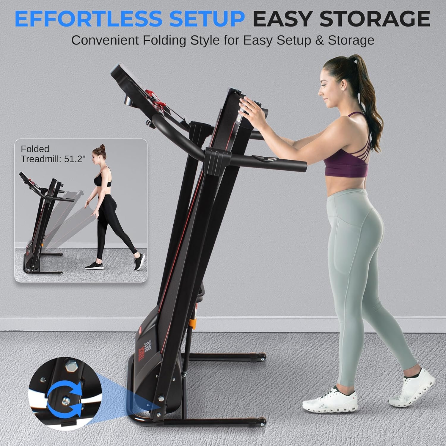 Convenient Folding Style: This Treadmill Is Portable & Foldable For Easy Setup & Storage. It Comes With Simple Electric Plug-In Design, Motorized Treadmill Power Of 1Hp, Built-In Grip Sensors For Pulse Monitoring & Adjustable Speed Up To 6Mph