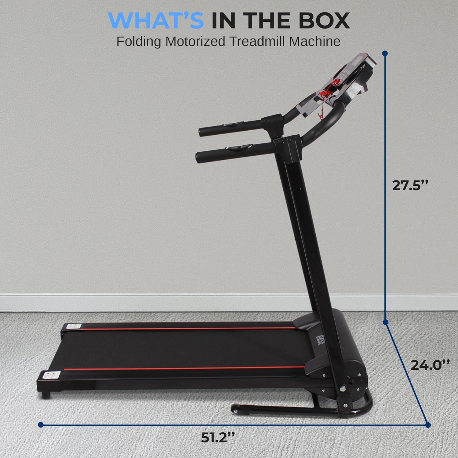 Safe To Use: Stay Safe & Get An Effective Workout With This Foldable Treadmill. It Comes With Integrated Safety Key & Emergency Shut-Off Button To Cut Power Instantly. Perfect For Jogging, Walking, Running & Cardio Workout At Home. Total Folded Dimensions (L X W X H)- 49.6 X 24.0 X51.2 Inches