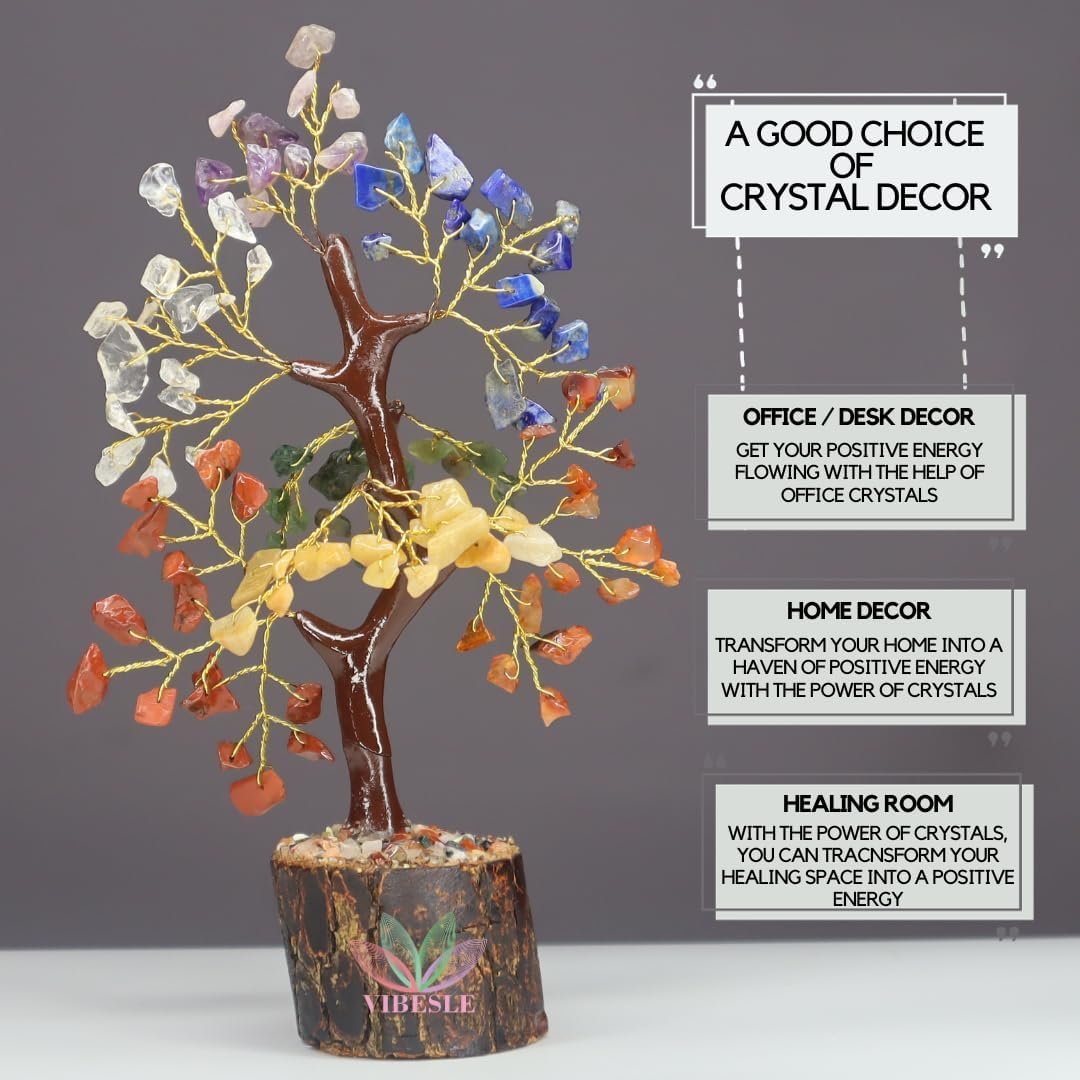 Crystal Tree For Positive Energy – Either it’s good luck, wealth, prosperity or feng shui. Our chakra crystal tree can do it all. Size Approximately 7-8 Inches, the gemstone tree comes folded, you can change the look with your creativity.