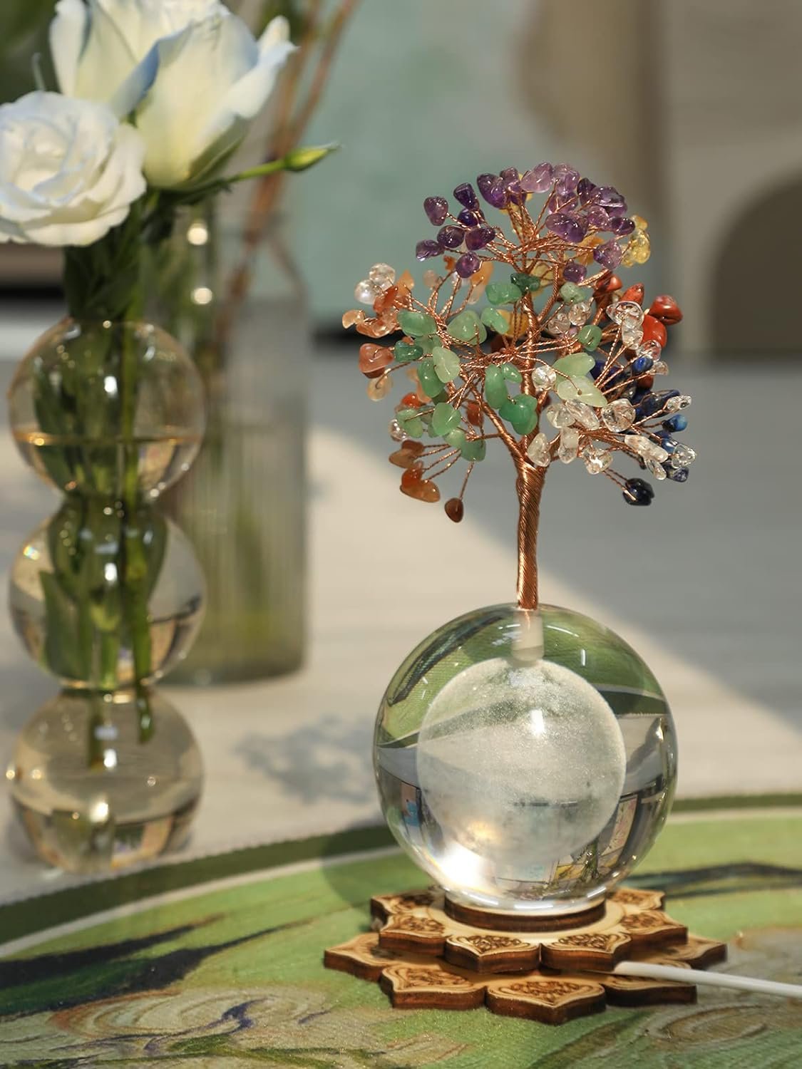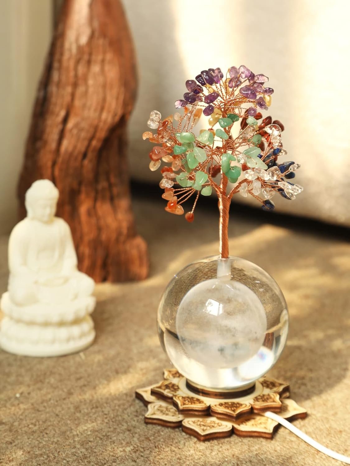 FENG SHUI DECOR FOR HOME OFFICE: With a lighted wood zen base, this chakra decor lights up your space, and brings comfort and warmth. The gemstone crystal tree of life acts as a money magnet as it attracts good luck and wealth. Place this zen tree at your home, office, living room, study room, meditation room or anywhere for Vastu correction, or expelling negative energy, activating chakras, instilling calmness & tranquility.