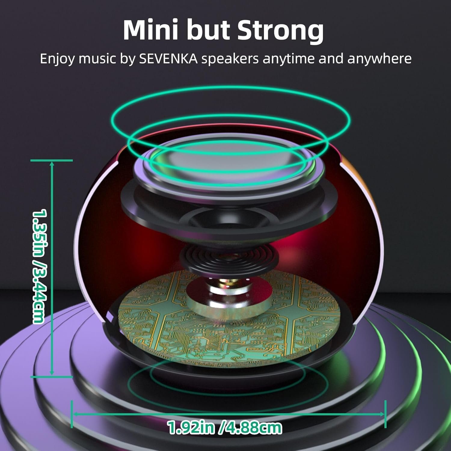 2025 New Year Gift, Lifetime Warranty, Mini but Impressive: Tiny size, big possibilities. With 1.92 in /4.88cm diameter, 1.35 in /3.44 cm height and 75 g/ 2.7 oz weight, SEVENKA metal tiny speakers can bring improved audio experience for louder vocals, clear and vibrant sound through a 3W high-performance driver and subwoofer. Small, but such powerful Bluetooth speakers wireless stream music from your Smartphone, tablet or other audio device with Bluetooth connection